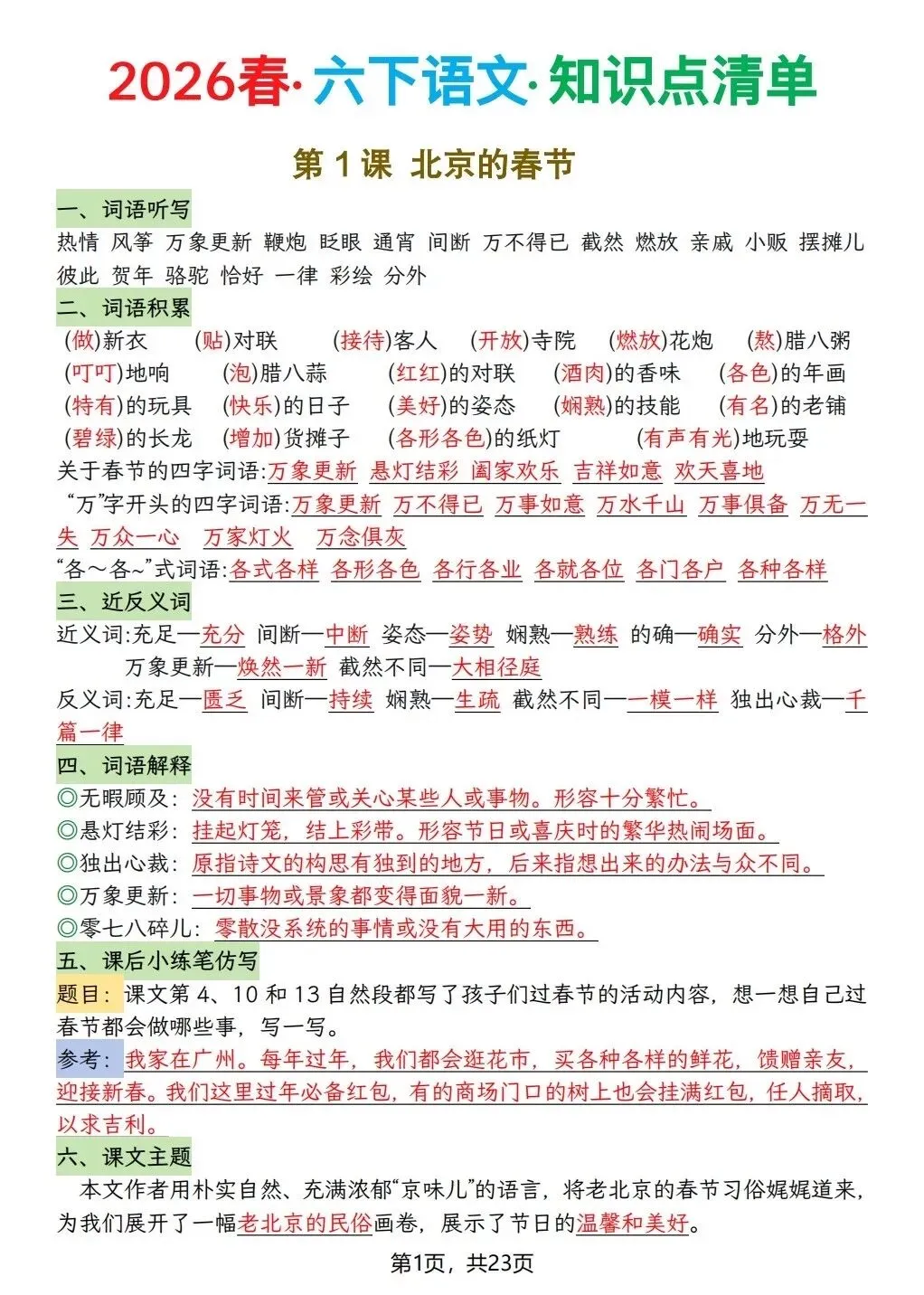 26春六年级下册语文每课知识点清单(电子版可打印)