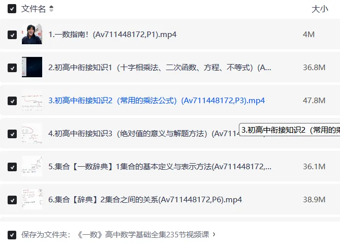 各位高中生和家长,高中数学打基础超关键!今天真诚分享《一数》高中数学基础全集 235 节视频课,从基础知识点拆解到题型讲解,条理清晰、通俗易懂,不管是高一打基础还是高三补短板都超适用,视频课可下载学习,跟着系统学,轻松吃透高中数学基础考点,解题思路更清晰!
