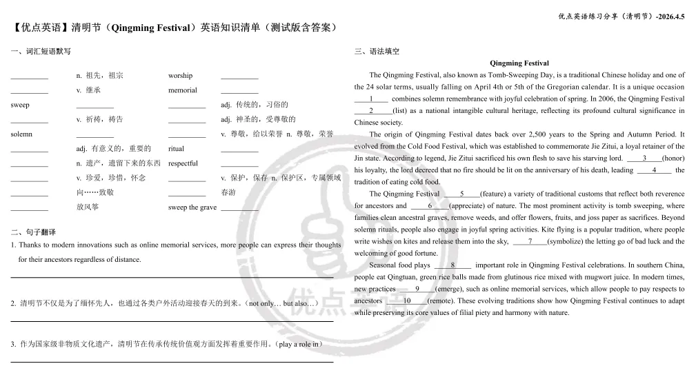 传统节日——清明节素材积累(可打印)