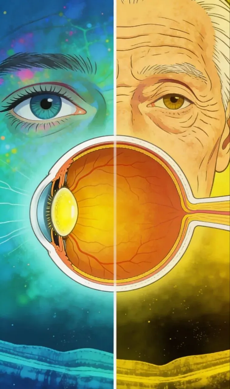 这相当于给眼睛戴上了一副“黄色滤镜”,传递给大脑的光信号大大减弱。