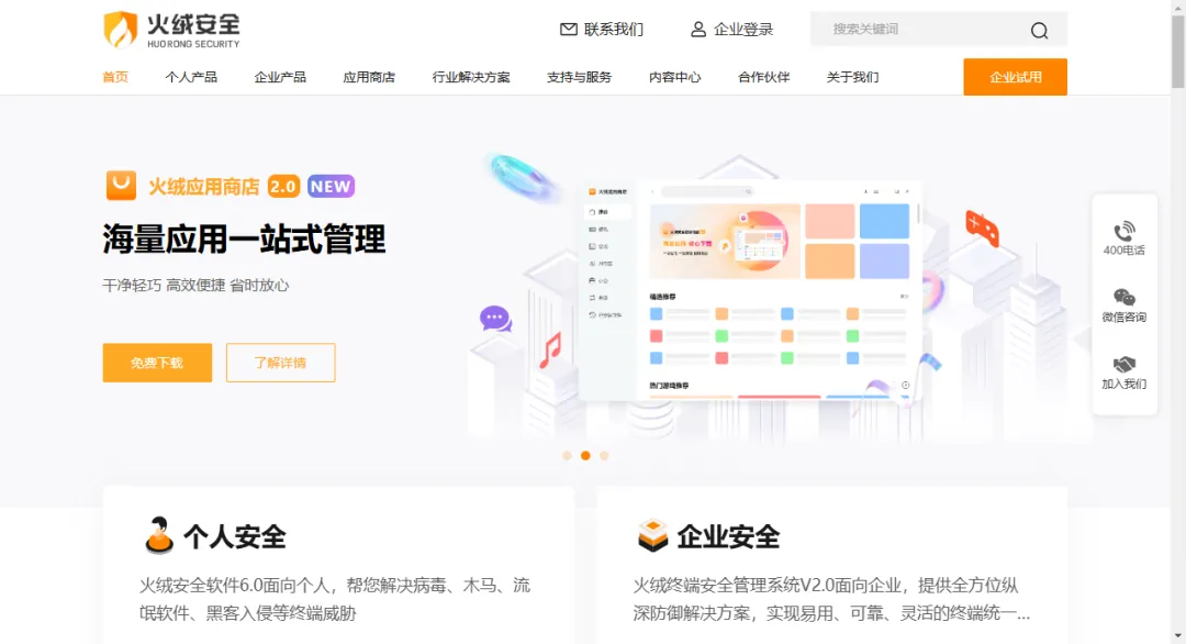 火绒安全(Huorong)是一家专注于终端安全技术的中国网络安全公司,其官方网站是用户获取产品、服务与技术支持的核心平台。