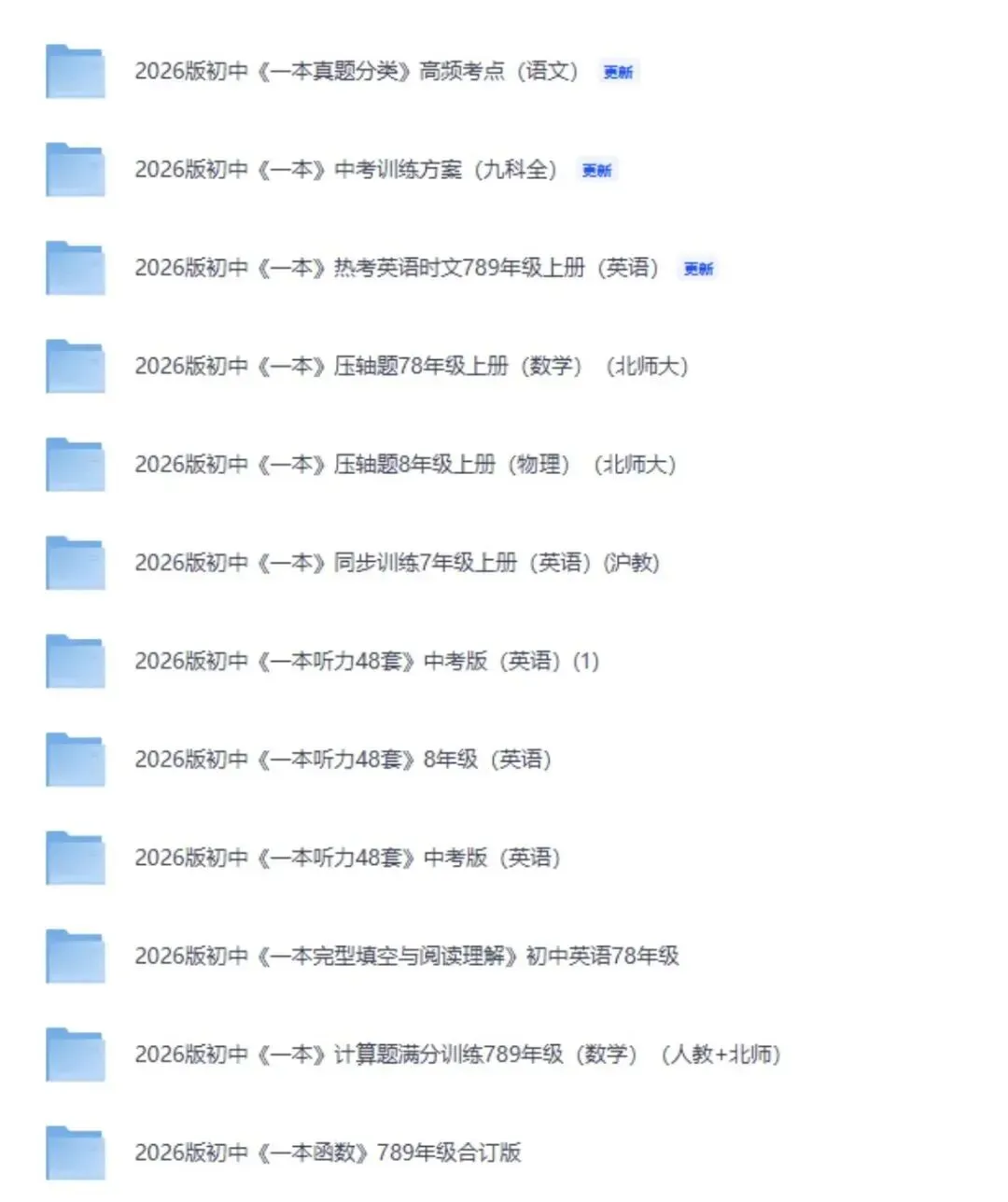 2026版初中全科《一本系列电子版合集》七八九年级 持续更新~ 电子版附链接直接下载