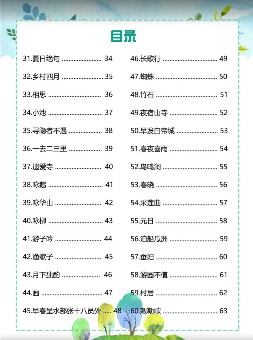 【幼小衔接】趣味古诗60首,电子版可打印