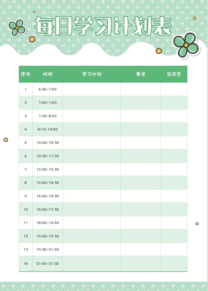 学习计划表,高清可编辑打印 下载链接:https://pan.quark.cn/s/99552d733293 部分内容展示 —– —– —– —– —– —– 本期领取方式 1:点亮右下角“赞”+”“+留言“计划表” 2:馋猫推文聊天窗口回复:计划表 更多资料可关注下方公众号