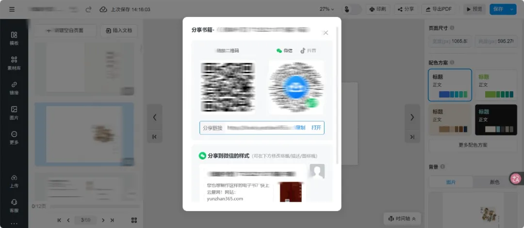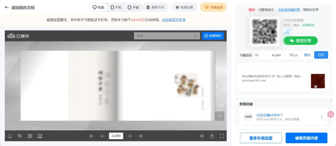 企业宣传与市场营销:制作产品目录、企业年报、招商画册、活动邀请函等,替代传统纸质印刷,生成链接和二维码后一键分享至微信、朋友圈等社交平台。