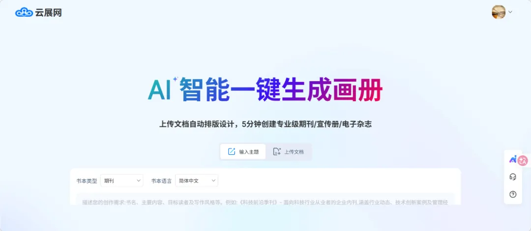 平台已稳定运行十余年,累计服务超过百万用户,涵盖出版社、企业、学校及个人创作者等多元群体。近年来,云展网在原有“上传即转”的基础上,进一步融合AI能力,支持输入主题智能生成画册框架、自动识别文档结构完成排版,从单纯的文档转换工具升级为“AI+数字出版”模式。目前,云展网已延伸出数字画册制作、线上云展厅、二维码营销工具三大核心服务矩阵,并面向大型机构提供私有化部署方案。