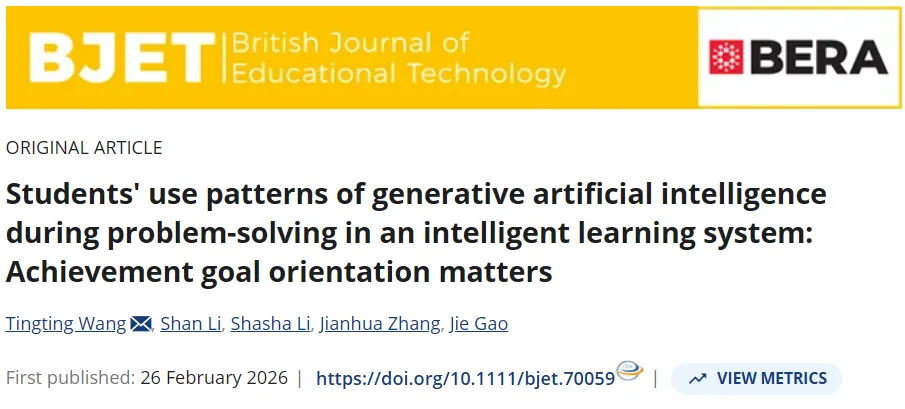 原文标题:Students’ use patterns of generative artificial intelligence during problem-solving in an intelligent learning system: Achievement goal orientation matters