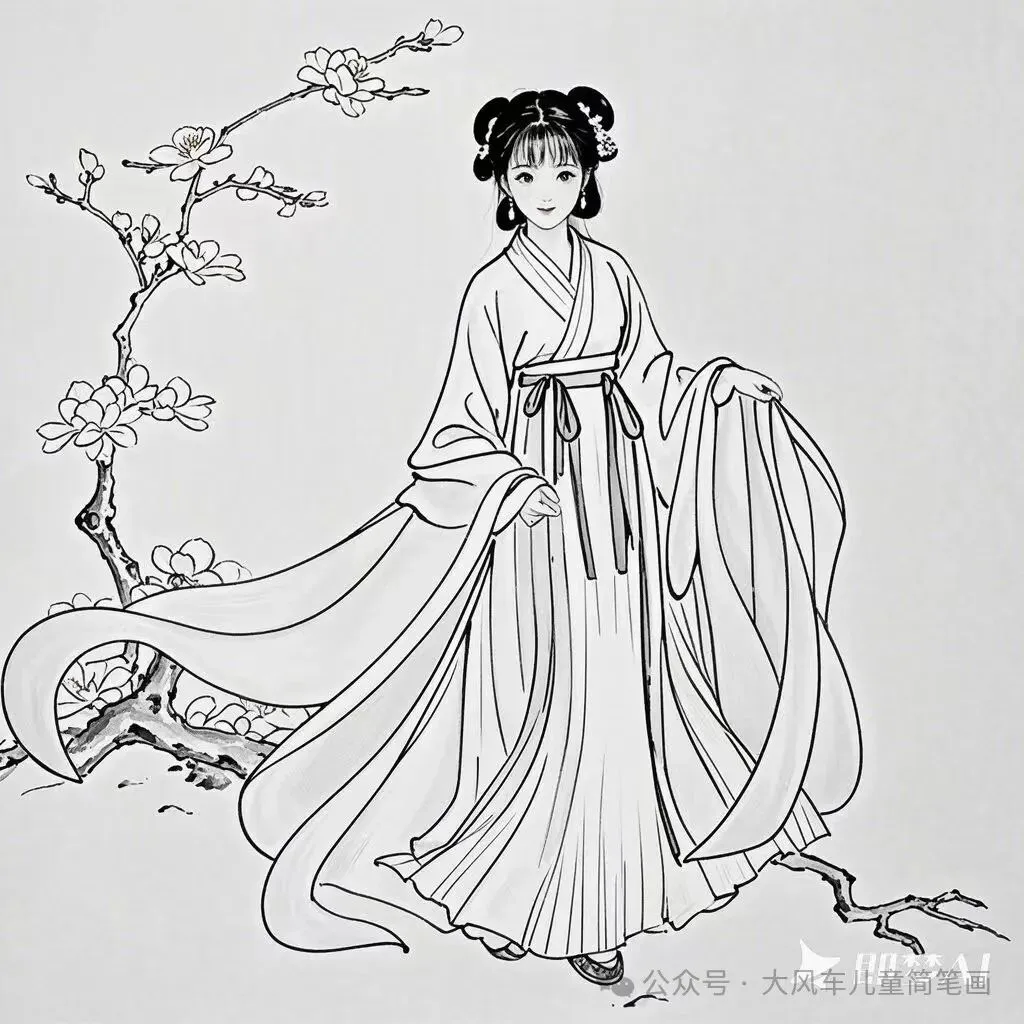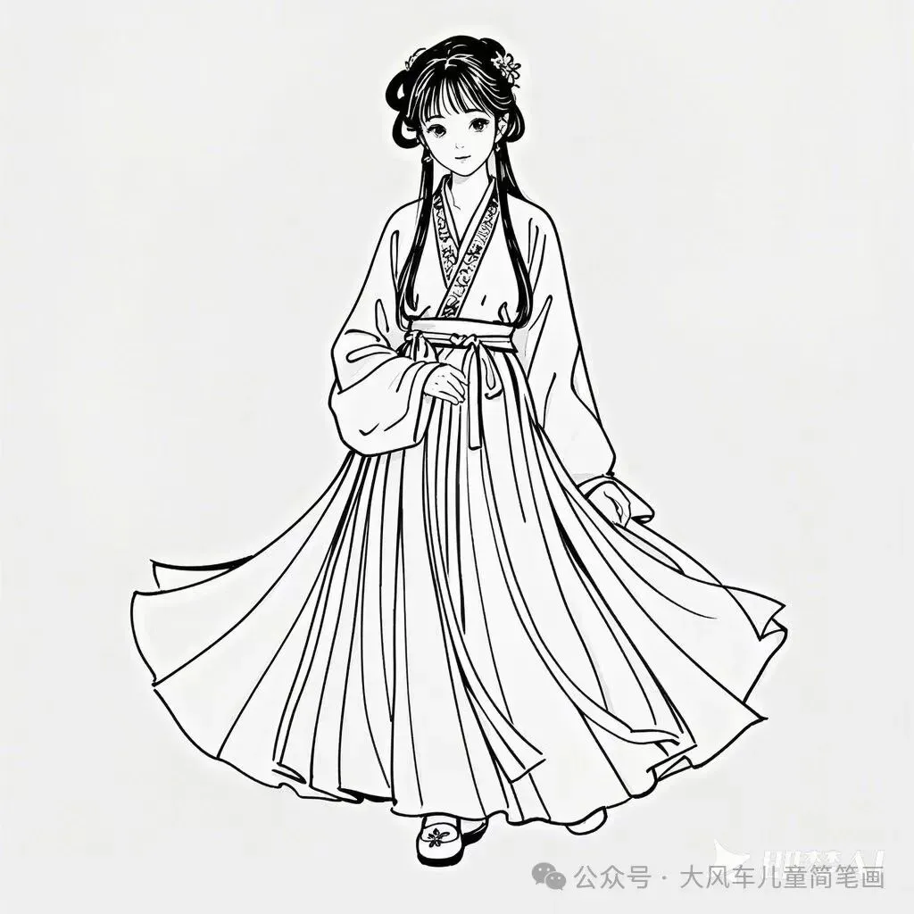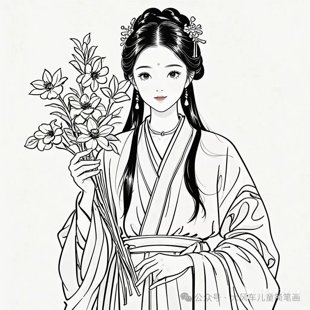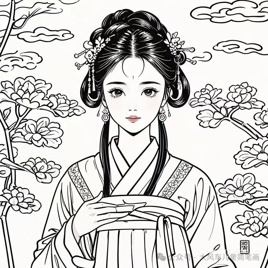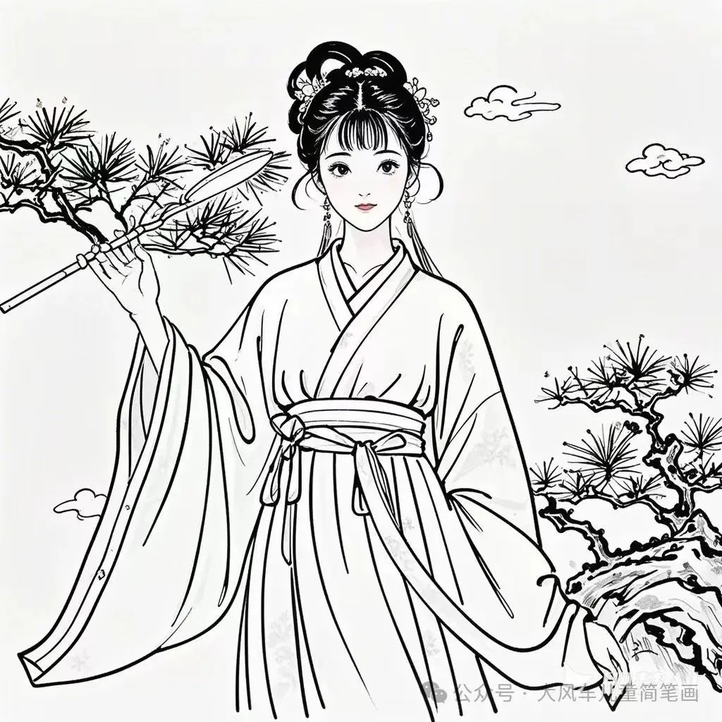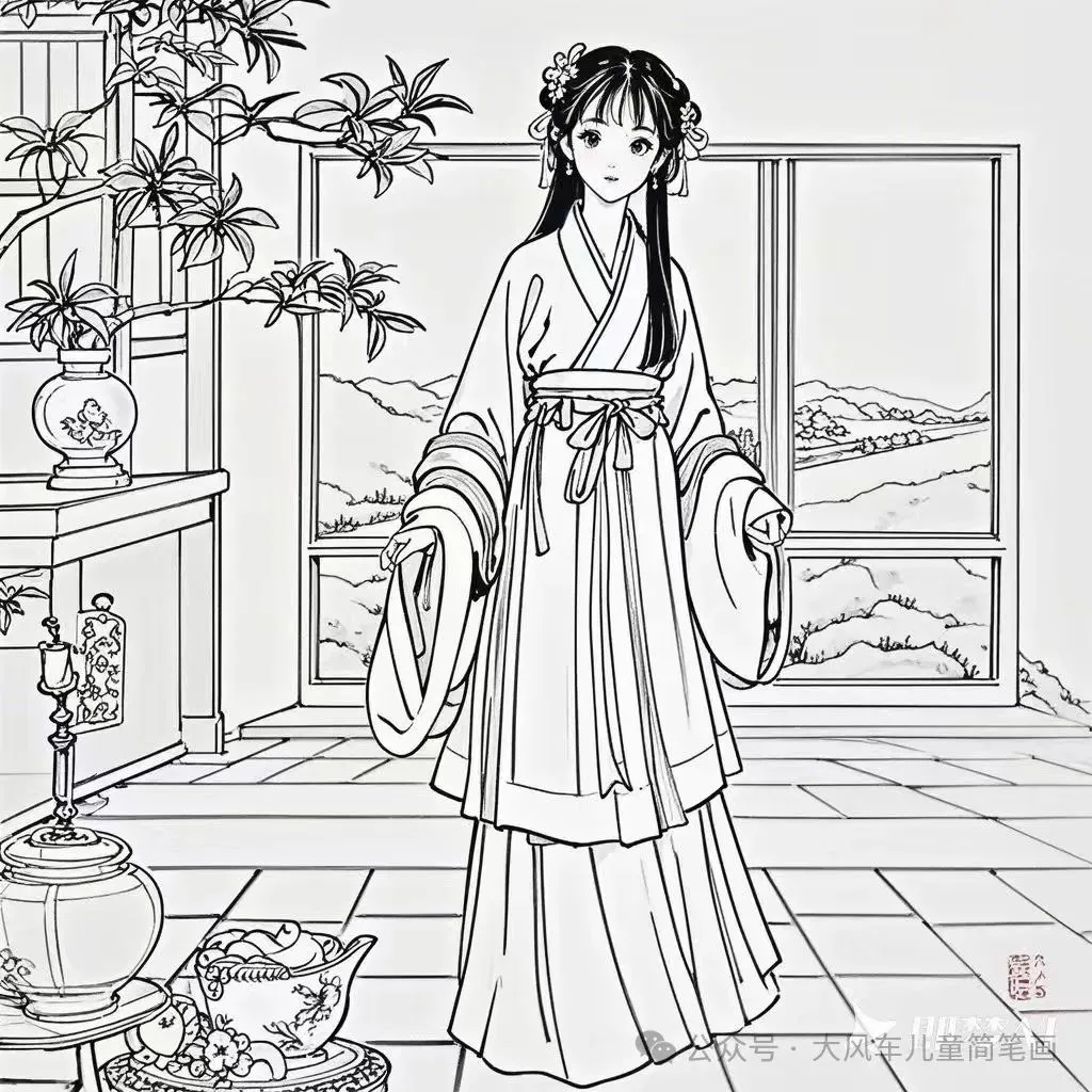 可爱简笔画,人人可学会 治愈系 俊俏妖娆 绝美的古风中国少女 线稿 涂色