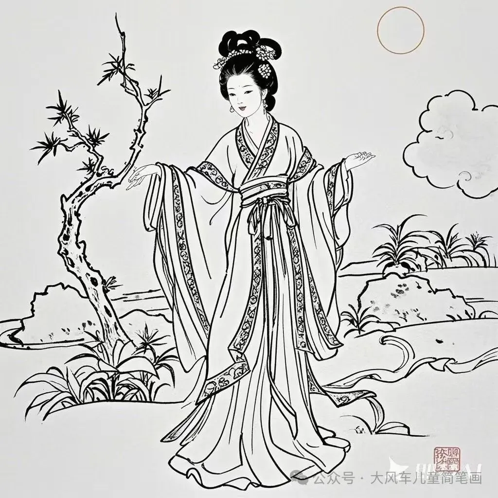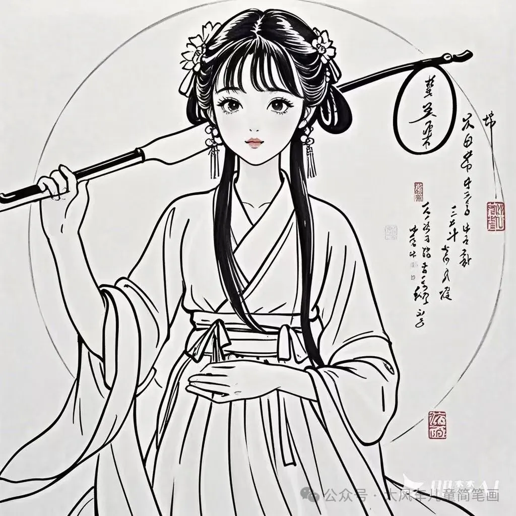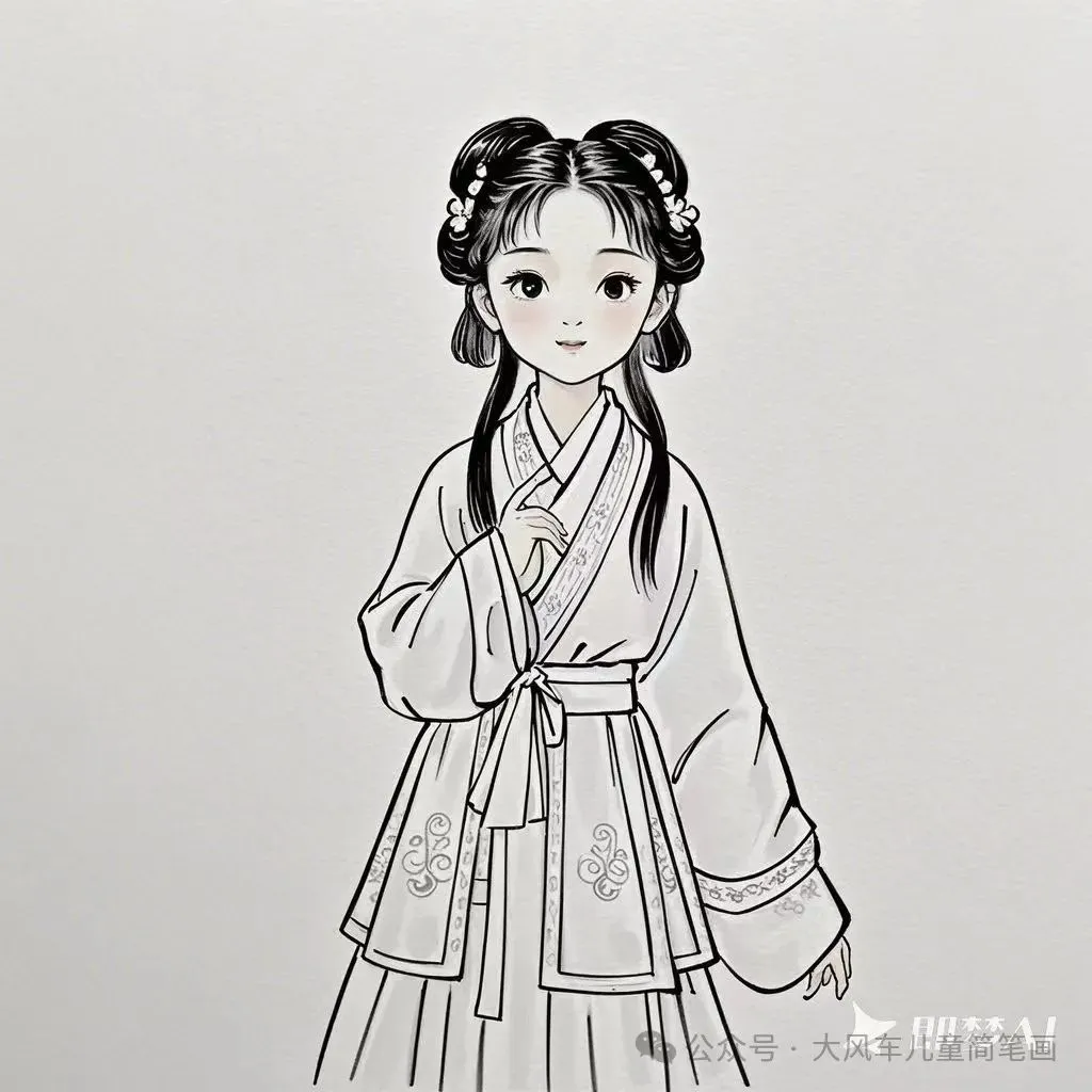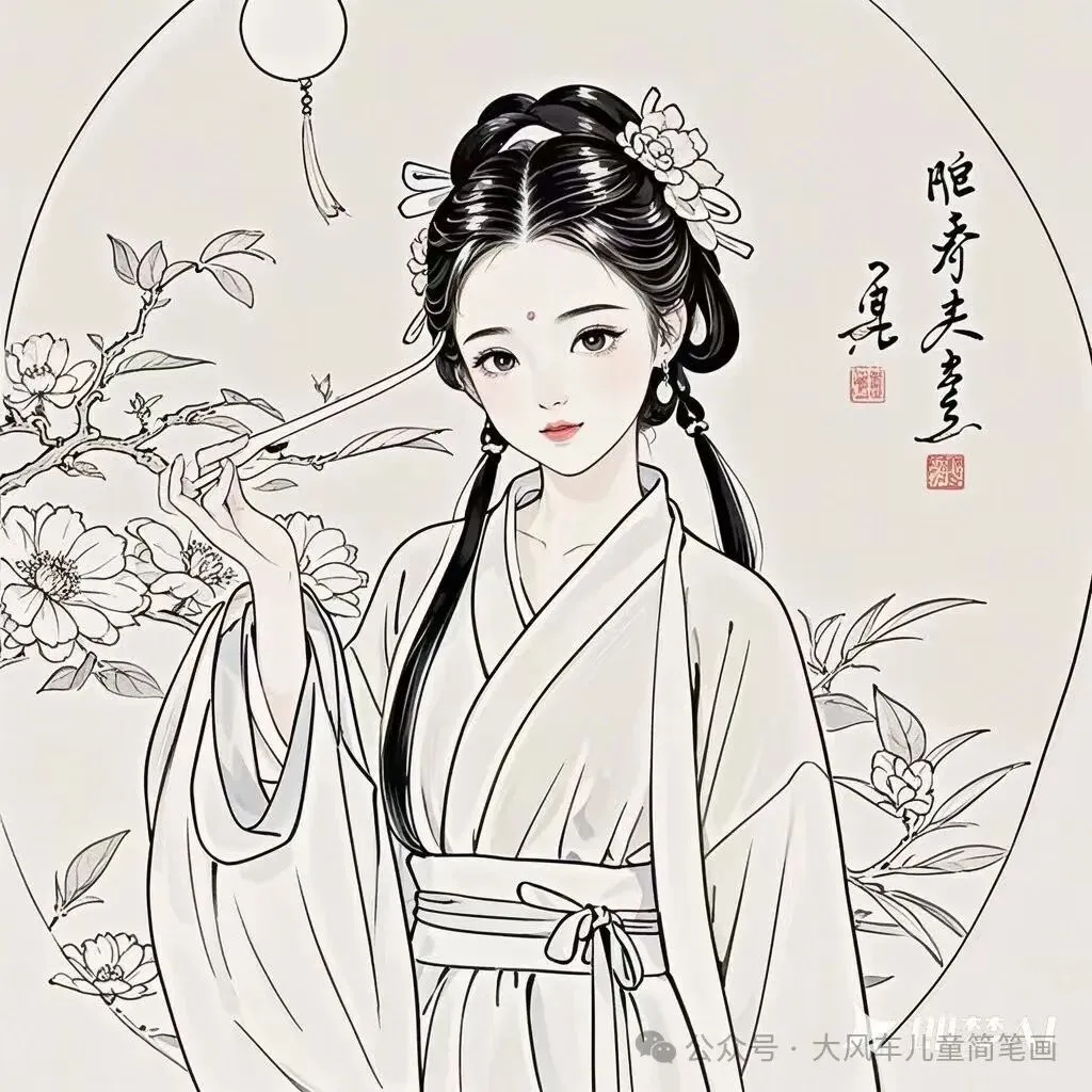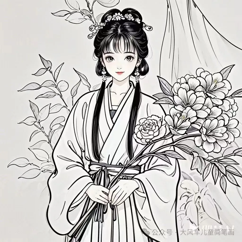 可爱简笔画,人人可学会 治愈系 俊俏妖娆 绝美的古风中国少女 线稿 涂色