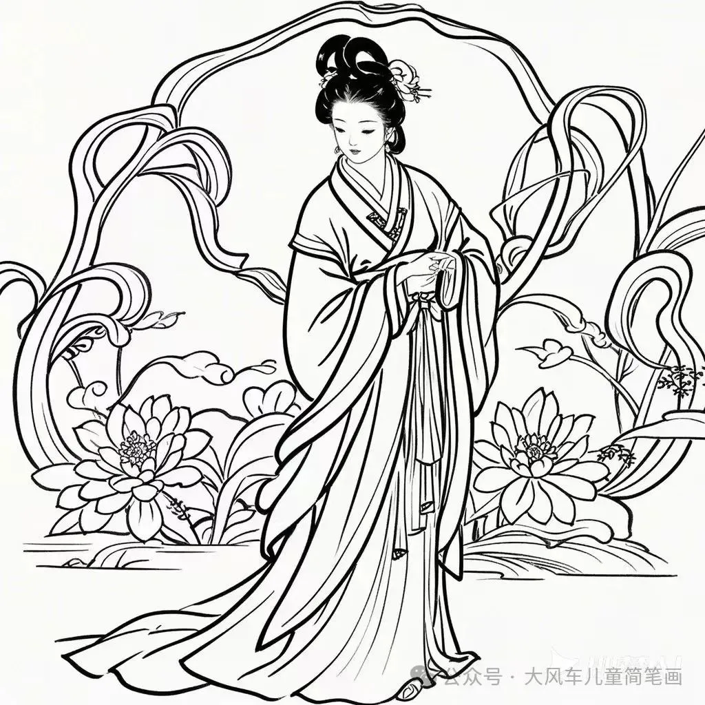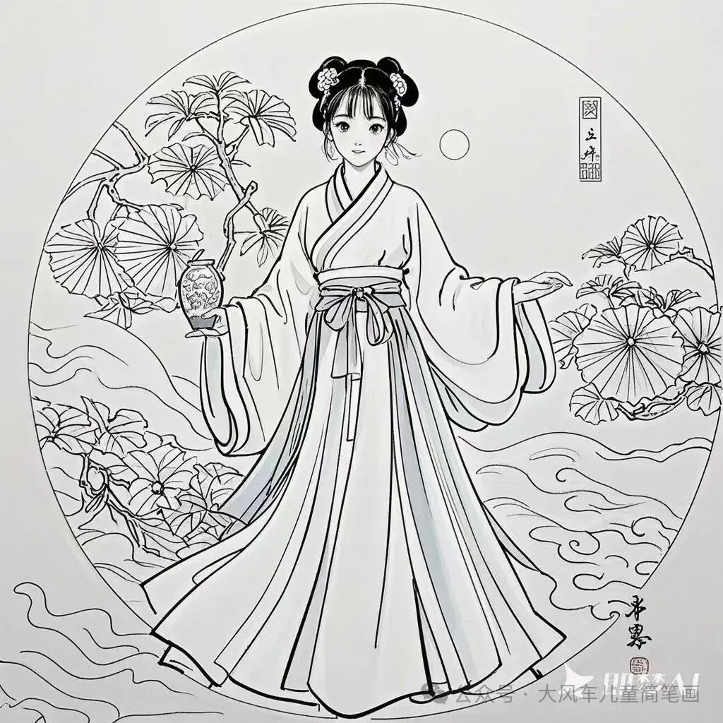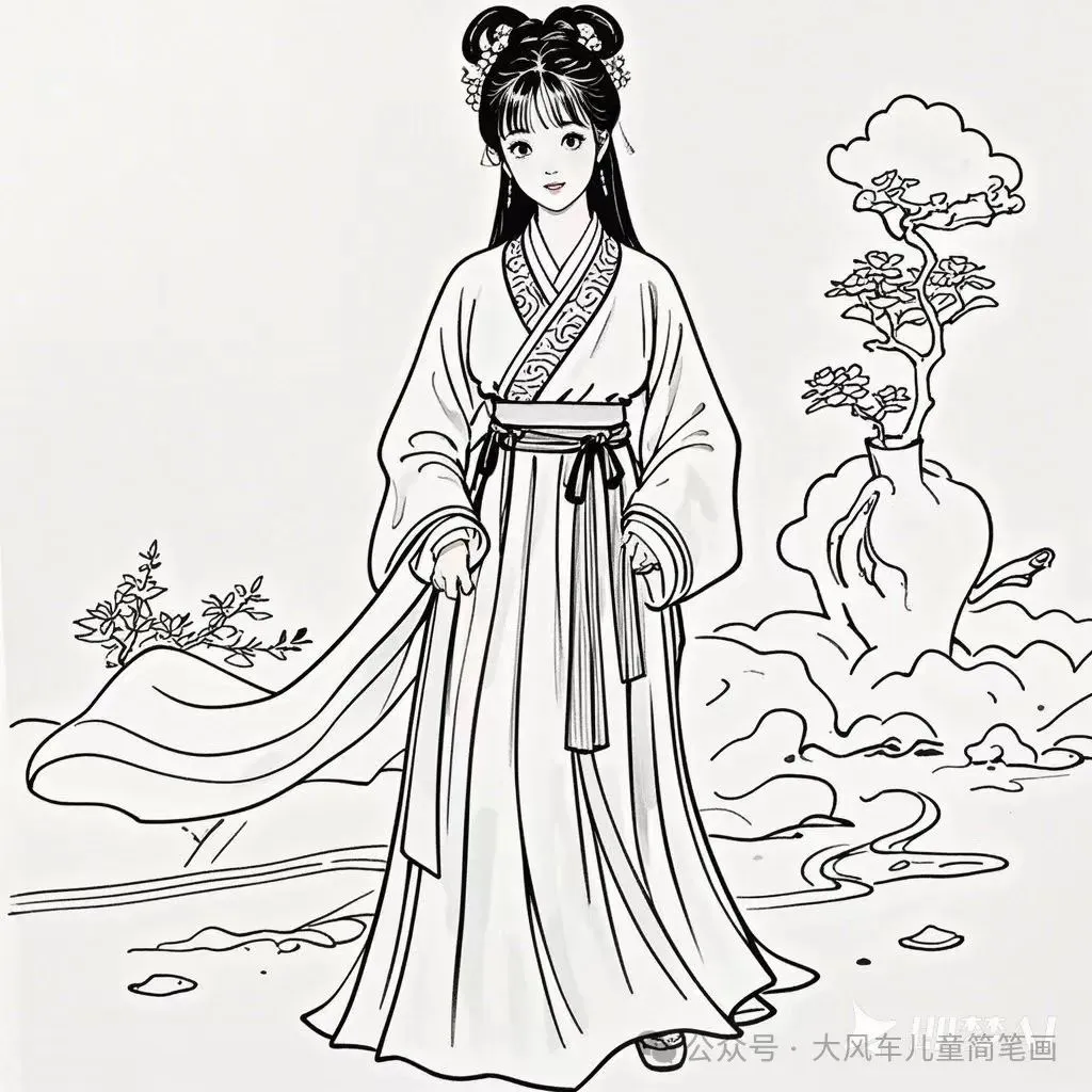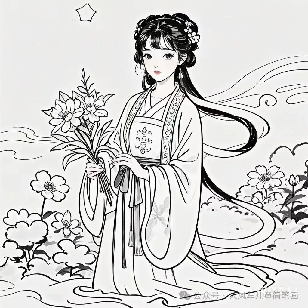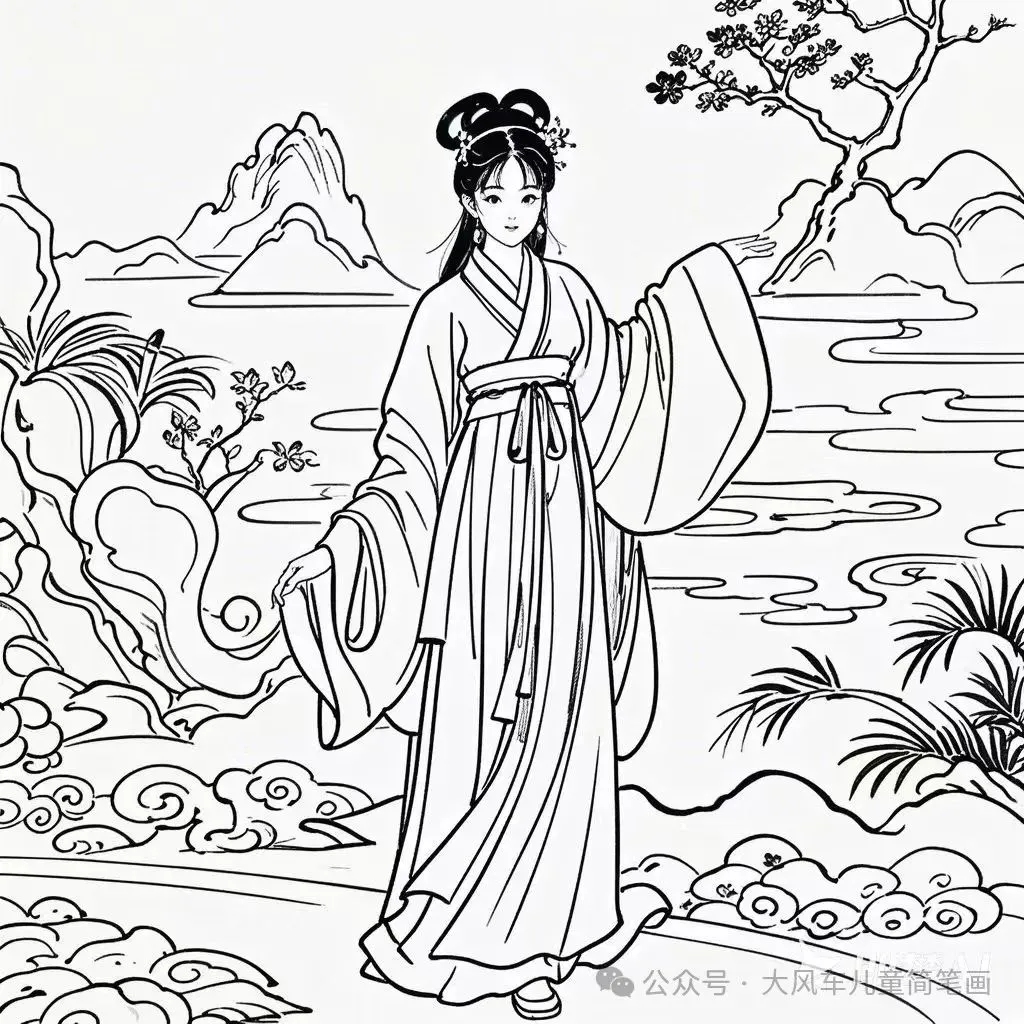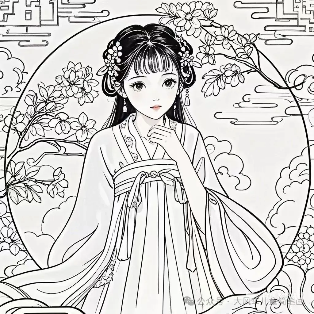 可爱简笔画,人人可学会 治愈系 俊俏妖娆 绝美的古风中国少女 线稿 涂色