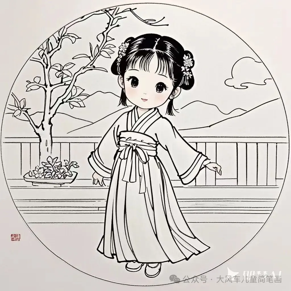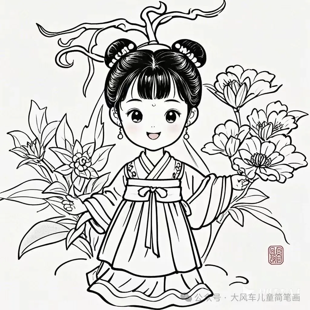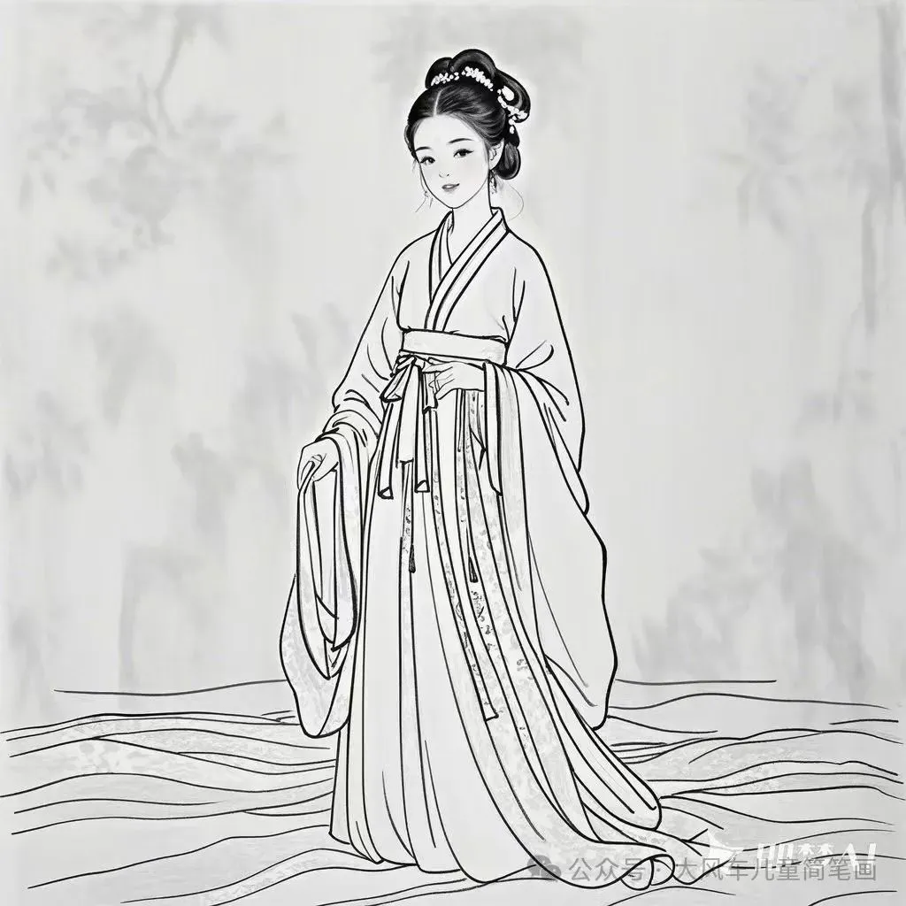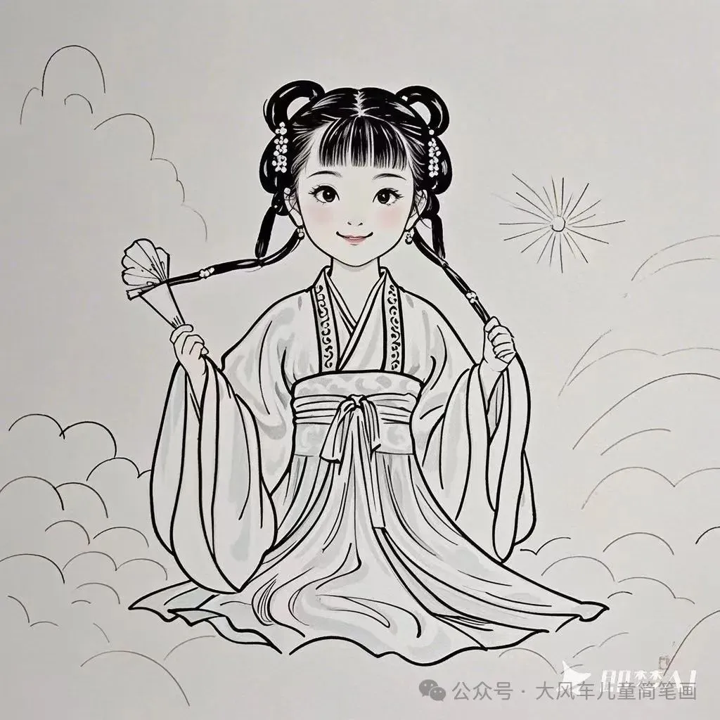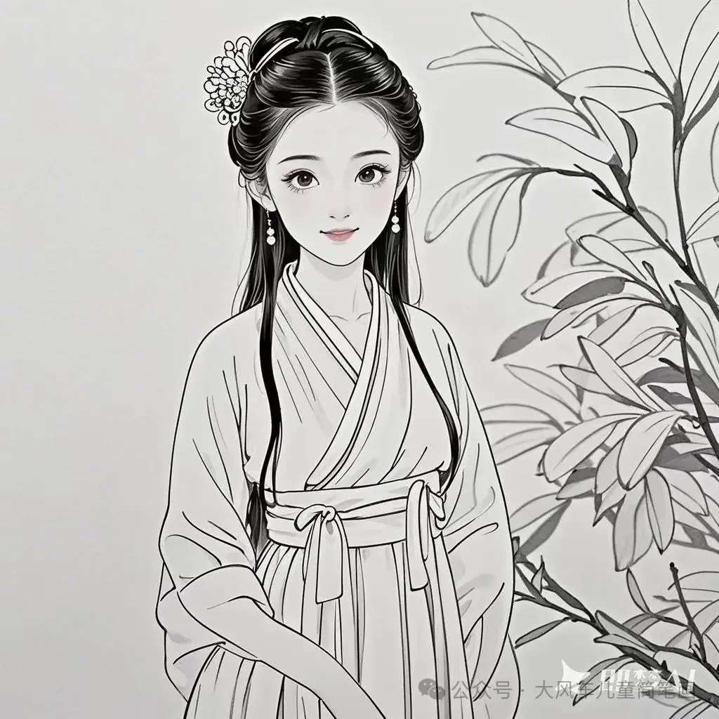 可爱简笔画,人人可学会 治愈系 俊俏妖娆 绝美的古风中国少女 线稿 涂色