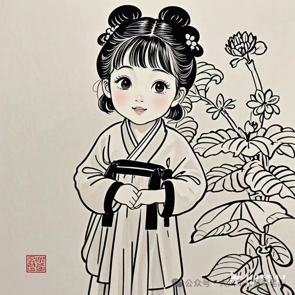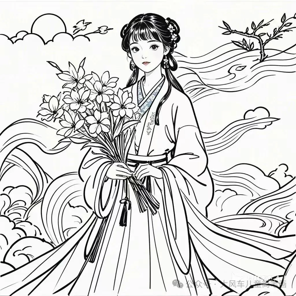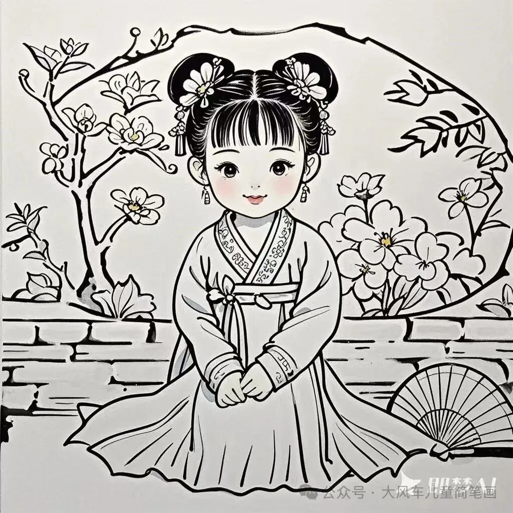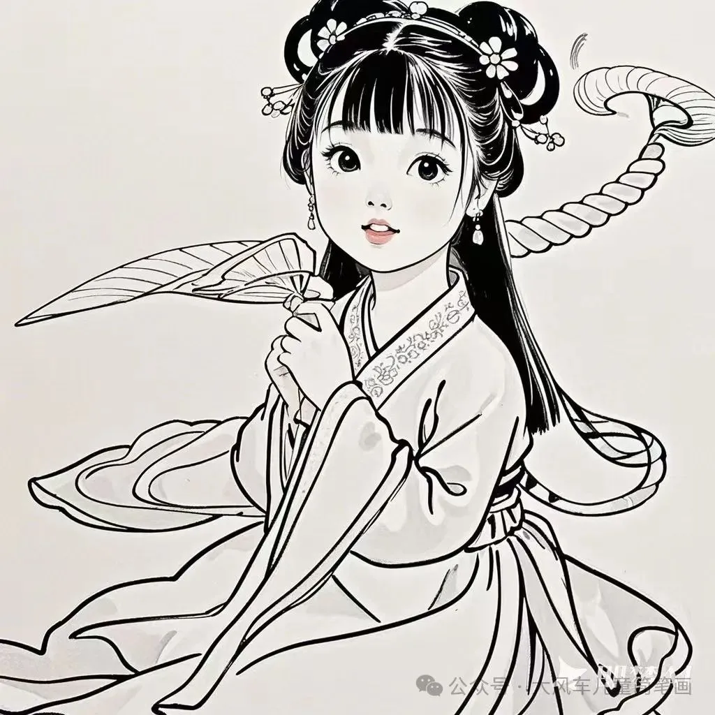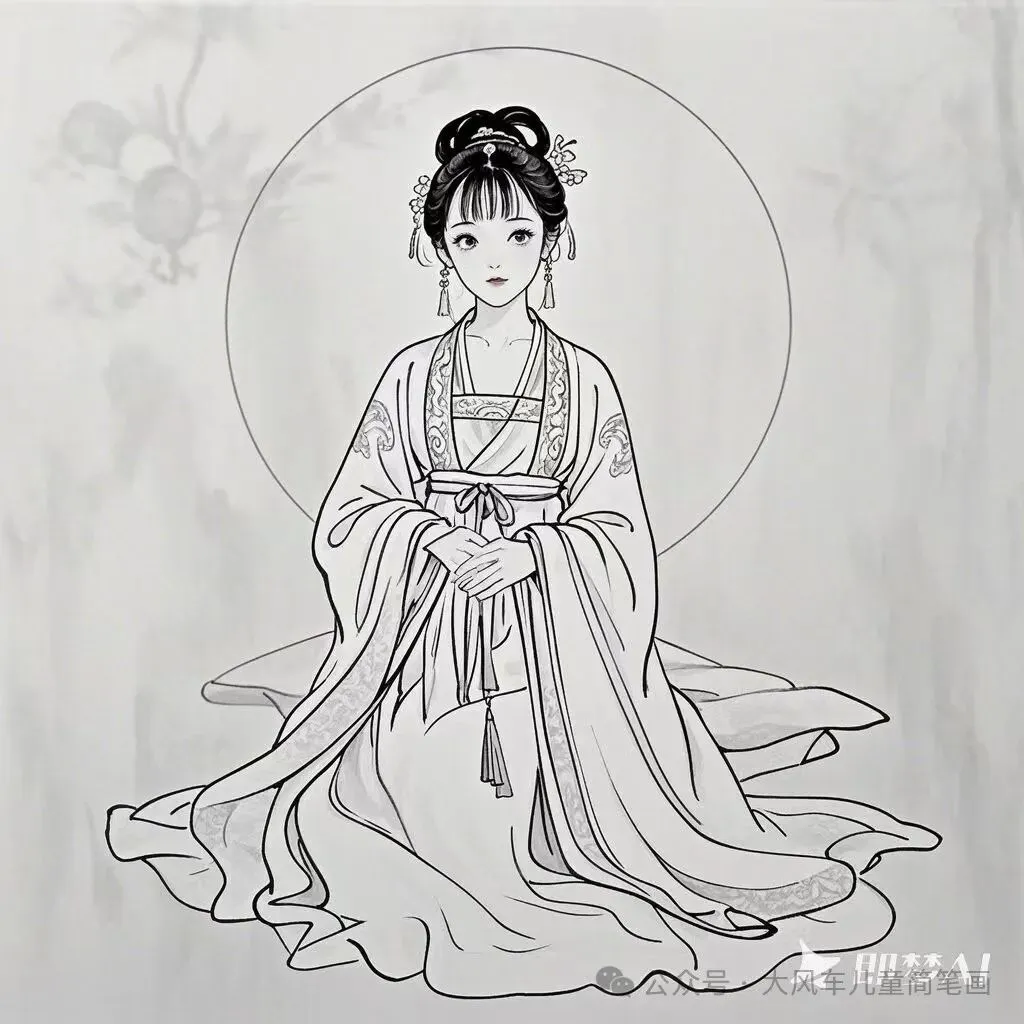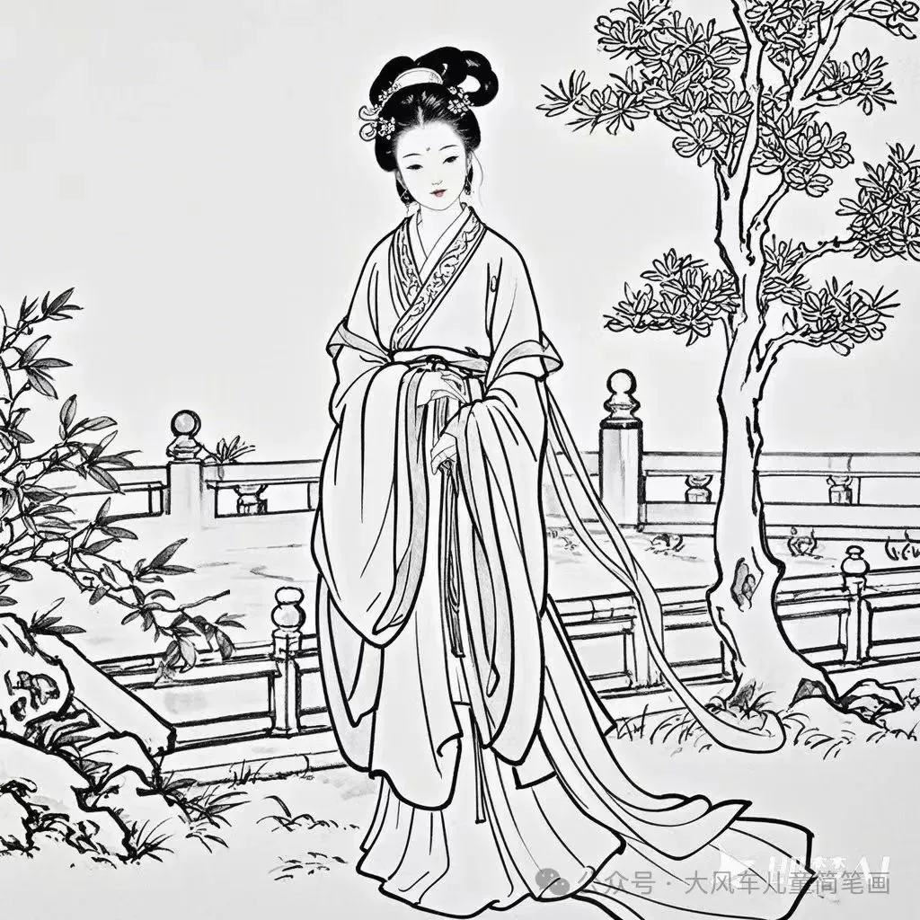 可爱简笔画,人人可学会 治愈系 俊俏妖娆 绝美的古风中国少女 线稿 涂色
