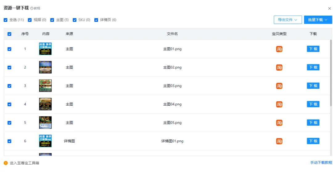 ✅ 一键下载支持主流电商平台(淘宝、拼多多、抖音等)的主图视频、详情视频一键提取,格式兼容,画质无损。