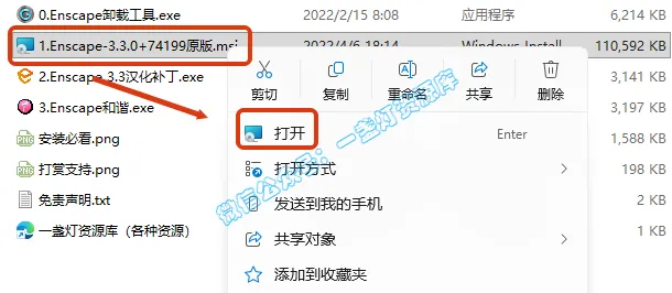 3.右键【1.Enscape-3.3.0+74199原版】安装程序,选择【打开】