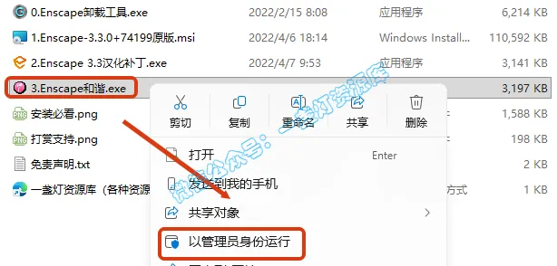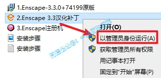 11.返回安装文件夹,选中【2.Enscape3.3汉化补丁】,右键选择【以管理员身份运行】