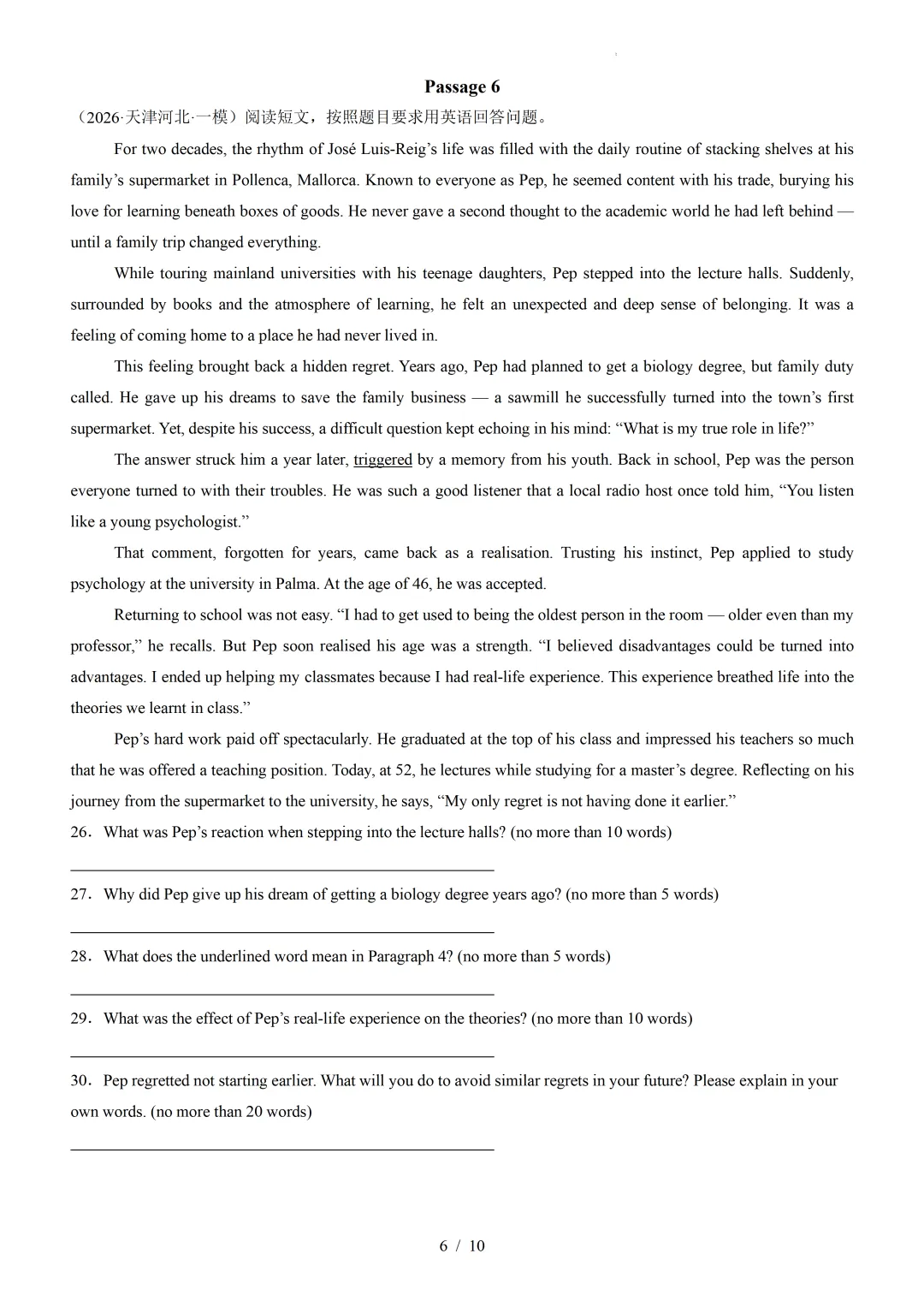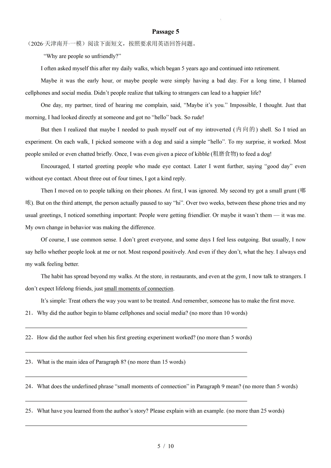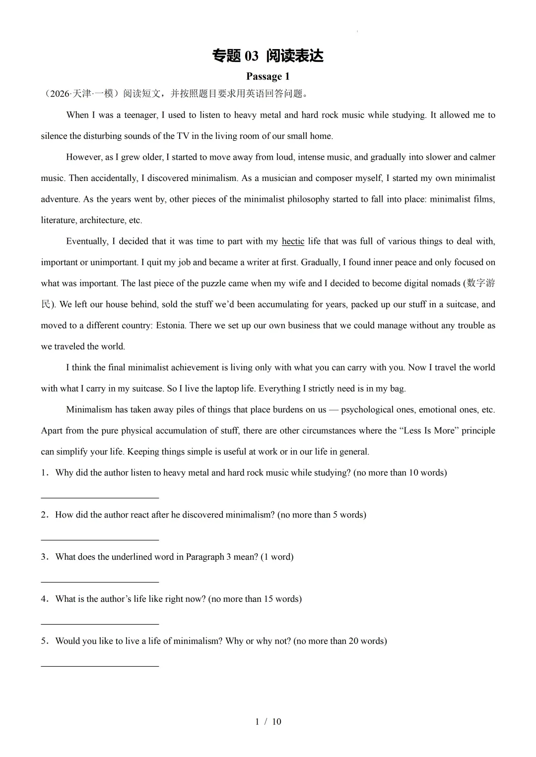 【可下载】2026年高考英语一模分类汇编03+阅读表达(天津专用)(附解析和答案) 点击上方“蓝字”免费关注! 本套试卷+答案解析下载入口 关注“卿卿侃古今”公众号 点击左下角阅读原文可下载 相关链接: 2007-2025年天津市高考英语真题汇总(持续更新中~) 2011-2023年天津高考英语听力真题在线测试 【高考英语听力在线测试】高考听力机考模拟试题大全(持续更新中) 【可下载】2025-2026年高中英语试题汇总(附解析)【持续更新中】 【汇总】高中英语月考和期中期末试题(持续更新中~) 【题库】高一英语试题汇编(持续更新中~) 【题库】高二英语试题汇编(持续更新中~) 【题库】高三英语试题汇编(持续更新中~) 【可下载】高三英语上学期期末试题16套(附解析) 【可下载】高二英语上学期期末试题10套(附解析) 【可下载】高一英语上学期期末试题汇9套(附解析) 【可下载】2025-2026学年度高一高二高三开学考试模拟试卷(天津专用)(附解析) 新外研版高中英语高清电子课本、课文原文和译文、单元同步复习资料和试题【持续更新中】 【目录1】高中英语阅读理解限时训练大全(持续更新中~) 【目录2】高中英语完形填空限时训练大全(持续更新中~) 【目录3】高中英语书面表达大全(持续更新中~) 【目录4】高中英语听力训练大全(持续更新中~) 【目录5】高中英语单选题大全(持续更新中~) 【目录6】高中英语语法题大全(持续更新中~) 【目录7】高中英语阅读表达题大全(持续更新中~) 【目录8】科普知识汇总 【目录9】中高考学法知识汇总 【目录10】高考英语真题+名校模拟真题+月考和期中期末试题(持续更新中~) 【目录11】暑期高考英语备考资料大全持续更新中~【汇总】中高考志愿填报资料大全 【汇总】高中英语月考和期中期末试题(持续更新中~) 【汇总】2025届高三英语一模试题(附解析) 【汇总】2024届高三英语一模二模三模试题(附解析) 【汇总】2024届高考英语押题卷(附解析) 【汇总】2025届高三英语周考综合练(附解析) 【题库】高三英语限时训练(持续更新中~) 【模拟】2025届高三英语听力机考模拟试题在线测试 【高考词汇】(新)外研版高中英语全七册词汇表(附音频) 【中考词汇】初中英语外研版必备单词表(完整版),可打印 建议收藏保存 点击阅读原文查更多