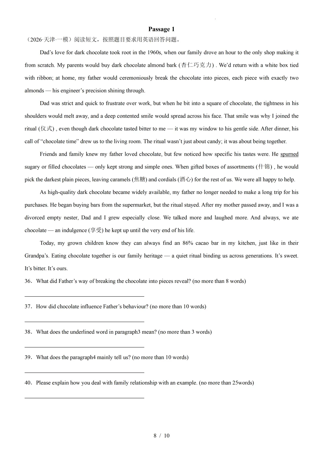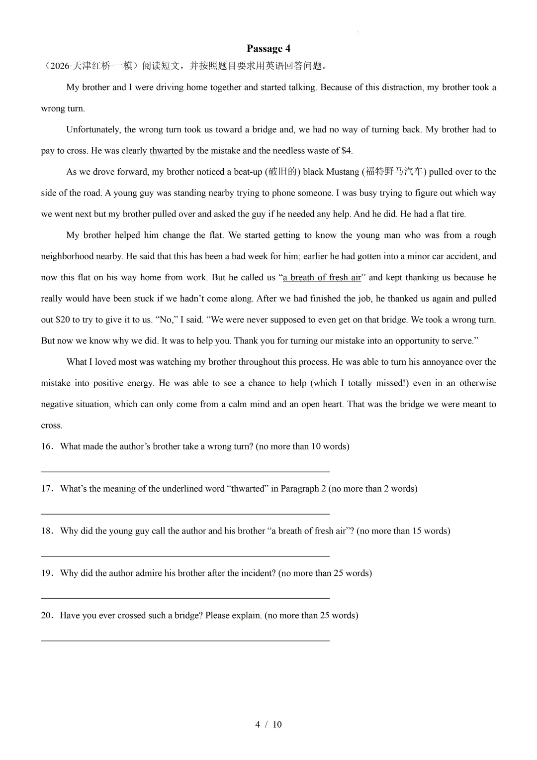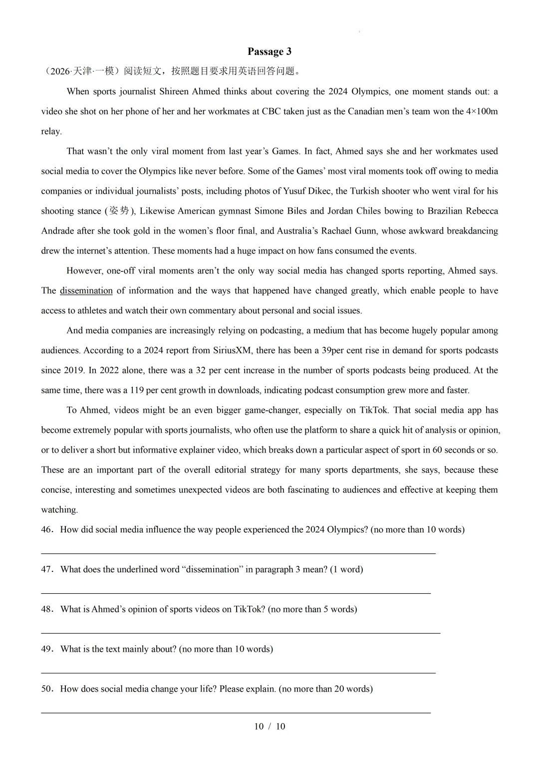 【可下载】2026年高考英语一模分类汇编03+阅读表达(天津专用)(附解析和答案) 点击上方“蓝字”免费关注! 本套试卷+答案解析下载入口 关注“卿卿侃古今”公众号 点击左下角阅读原文可下载 相关链接: 2007-2025年天津市高考英语真题汇总(持续更新中~) 2011-2023年天津高考英语听力真题在线测试 【高考英语听力在线测试】高考听力机考模拟试题大全(持续更新中) 【可下载】2025-2026年高中英语试题汇总(附解析)【持续更新中】 【汇总】高中英语月考和期中期末试题(持续更新中~) 【题库】高一英语试题汇编(持续更新中~) 【题库】高二英语试题汇编(持续更新中~) 【题库】高三英语试题汇编(持续更新中~) 【可下载】高三英语上学期期末试题16套(附解析) 【可下载】高二英语上学期期末试题10套(附解析) 【可下载】高一英语上学期期末试题汇9套(附解析) 【可下载】2025-2026学年度高一高二高三开学考试模拟试卷(天津专用)(附解析) 新外研版高中英语高清电子课本、课文原文和译文、单元同步复习资料和试题【持续更新中】 【目录1】高中英语阅读理解限时训练大全(持续更新中~) 【目录2】高中英语完形填空限时训练大全(持续更新中~) 【目录3】高中英语书面表达大全(持续更新中~) 【目录4】高中英语听力训练大全(持续更新中~) 【目录5】高中英语单选题大全(持续更新中~) 【目录6】高中英语语法题大全(持续更新中~) 【目录7】高中英语阅读表达题大全(持续更新中~) 【目录8】科普知识汇总 【目录9】中高考学法知识汇总 【目录10】高考英语真题+名校模拟真题+月考和期中期末试题(持续更新中~) 【目录11】暑期高考英语备考资料大全持续更新中~【汇总】中高考志愿填报资料大全 【汇总】高中英语月考和期中期末试题(持续更新中~) 【汇总】2025届高三英语一模试题(附解析) 【汇总】2024届高三英语一模二模三模试题(附解析) 【汇总】2024届高考英语押题卷(附解析) 【汇总】2025届高三英语周考综合练(附解析) 【题库】高三英语限时训练(持续更新中~) 【模拟】2025届高三英语听力机考模拟试题在线测试 【高考词汇】(新)外研版高中英语全七册词汇表(附音频) 【中考词汇】初中英语外研版必备单词表(完整版),可打印 建议收藏保存 点击阅读原文查更多