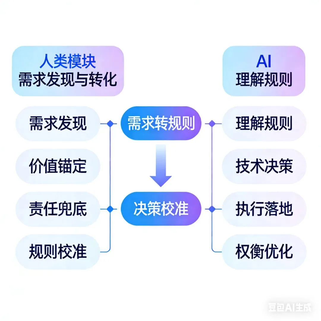 这场变革的核心,并非AI替代人类,而是人机分工的彻底厘清。AI的优势在于完备规则下的高效执行与理性权衡,却无法自主感知真实需求、定义模糊的商业价值与伦理底线;能精准执行既定约束,却无法应对无先例的创新场景与动态变化的业务诉求;能输出完美的技术方案,却无法承担决策失误后的法律责任、商业损失与职业风险。这是AI无法突破的边界,更是人类在AI时代软件工程中,不可动摇的核心定位。