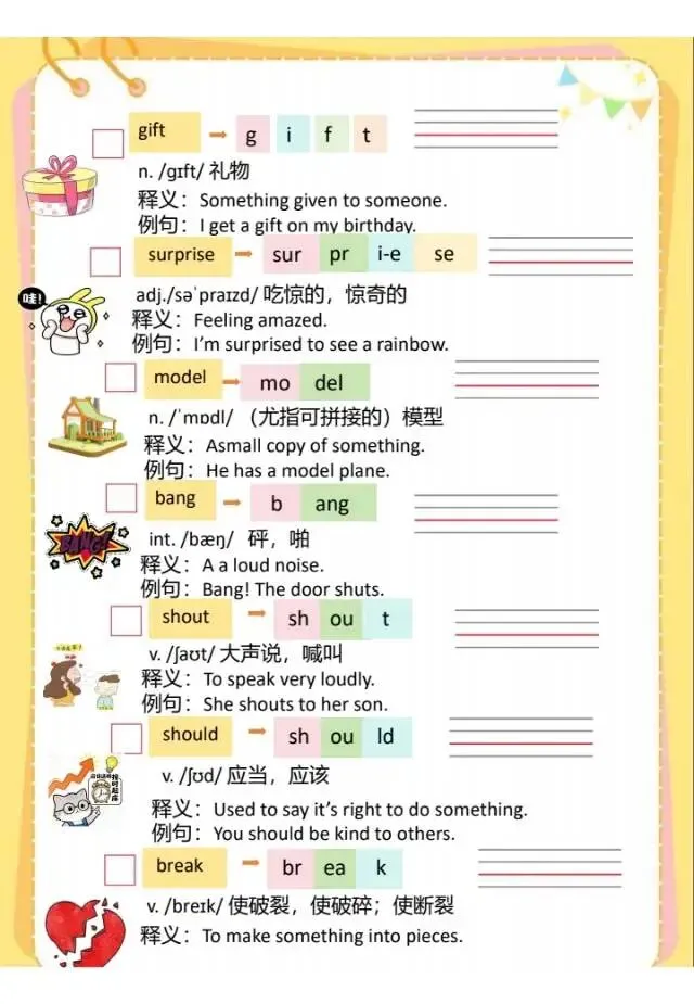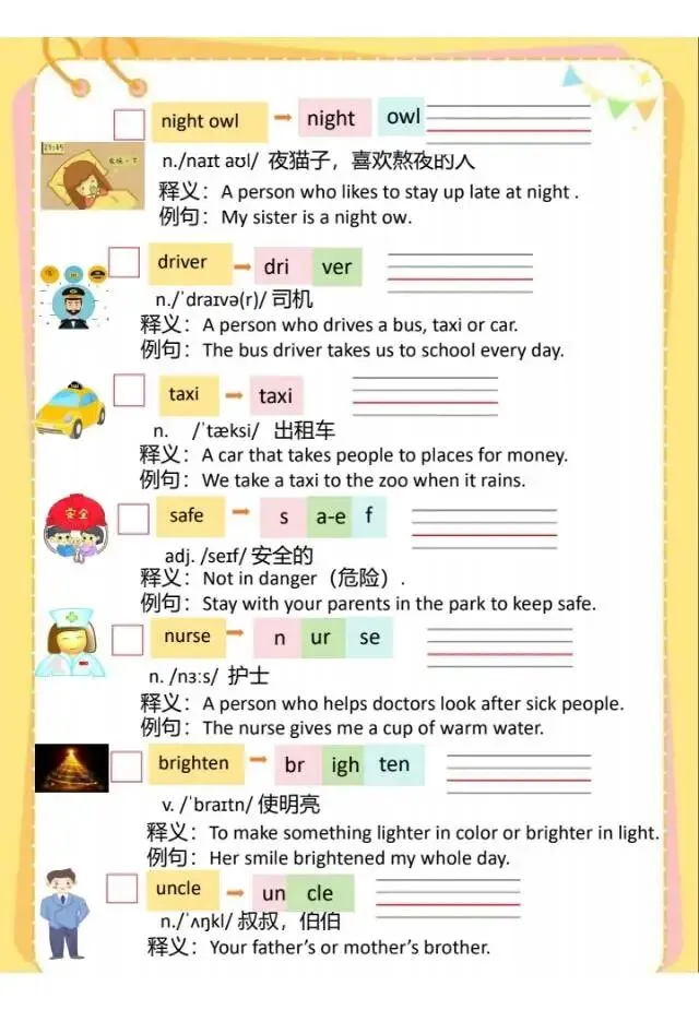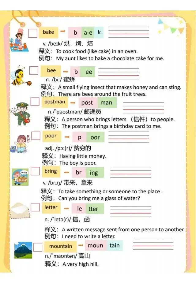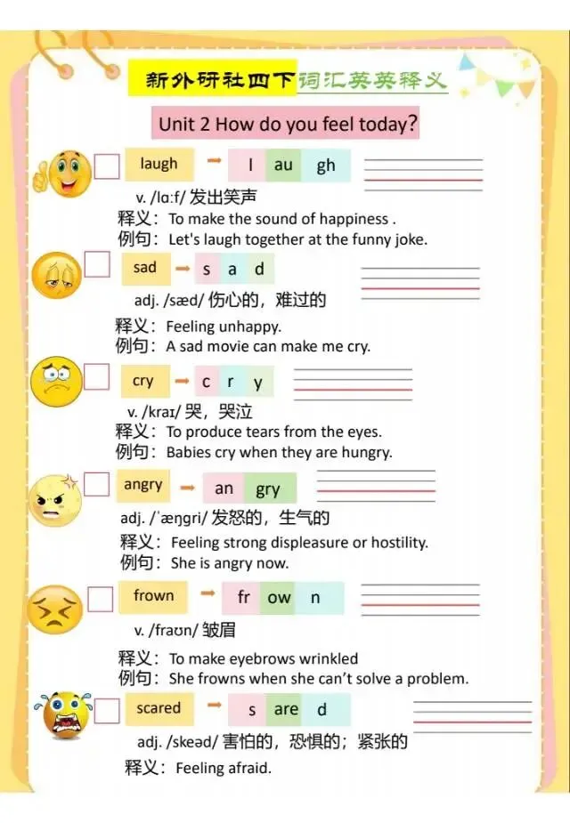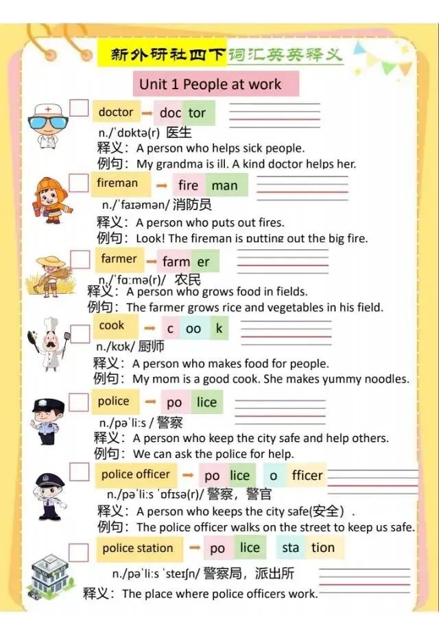 今天给大家分享的是:春四年级下英语外研社词汇英英释义,有需要的家长可以给孩子们打印出来练一练,及时查漏补缺。