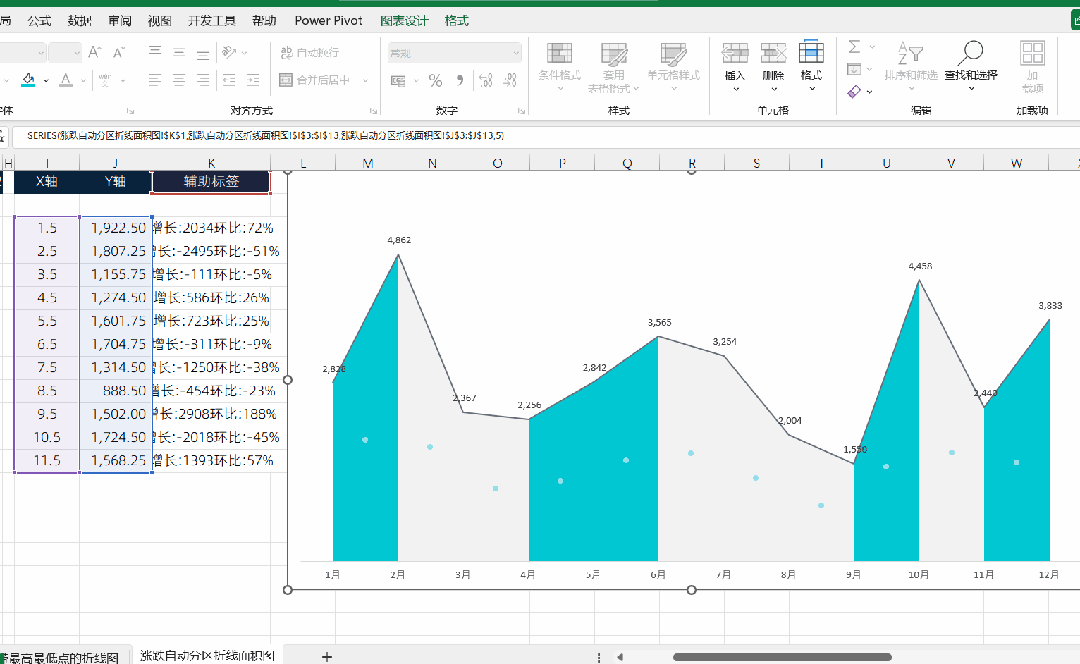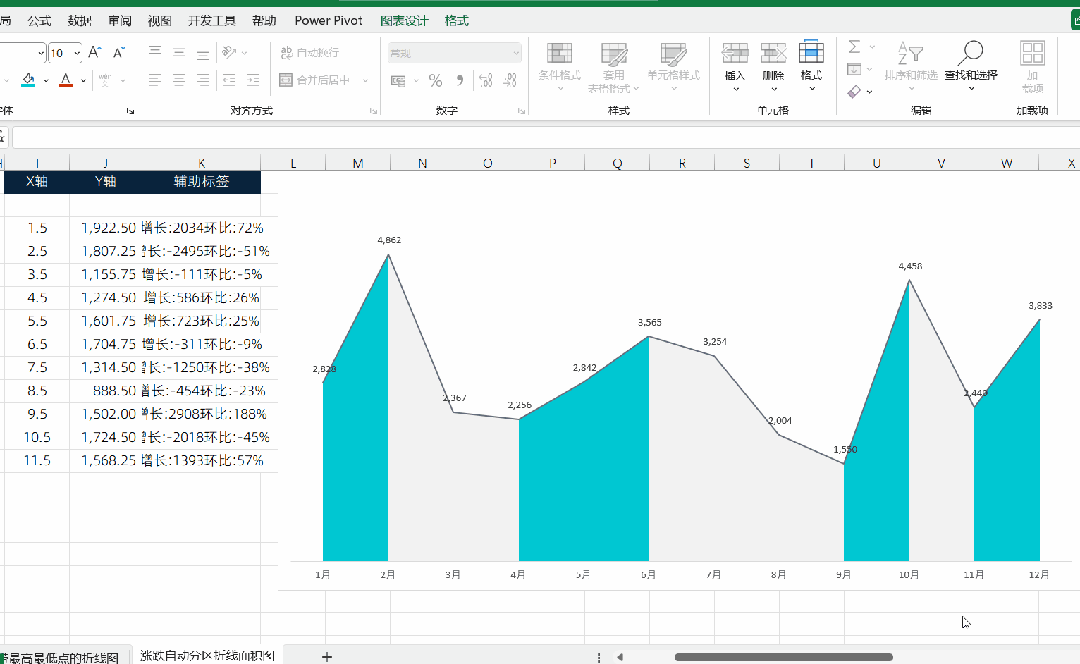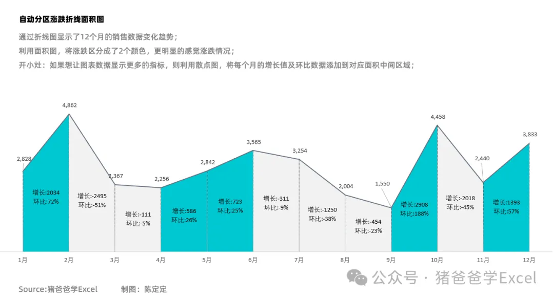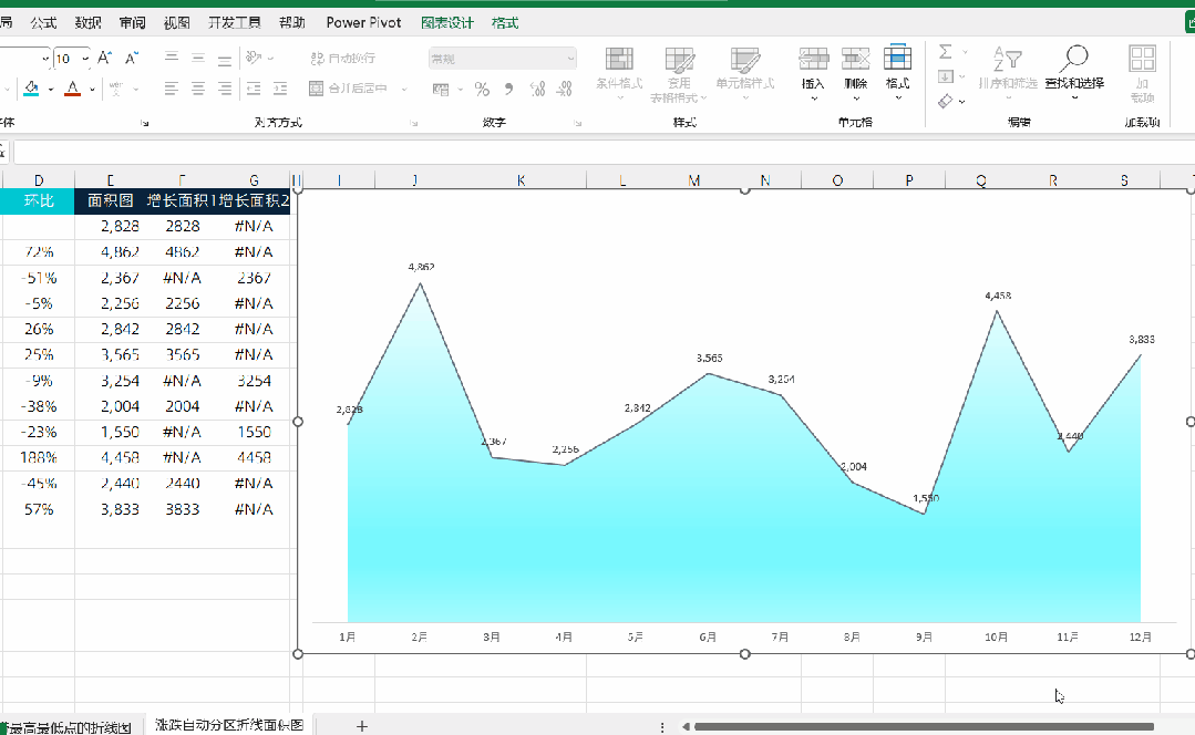 这一节是猪爸爸学excel图表之:涨跌分区面积折线图