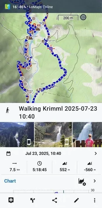 每个人在旅行中都会拍摄大量的照片和视频。Locus Map 一直以来都支持将它们显示在地图上,但这次我们新增了一个功能,可以将所有照片和视频整齐地排列在特定路线旁边。它们会直接显示在地图下方,与路线信息并列。