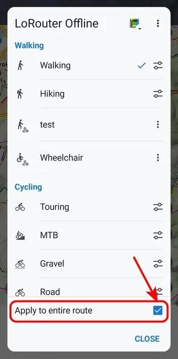 现在这个决定简单多了——只需勾选或取消勾选路线配置文件选择底部的“整条路线”选项。然后点击相应的配置文件名称进行选择,即可继续规划: