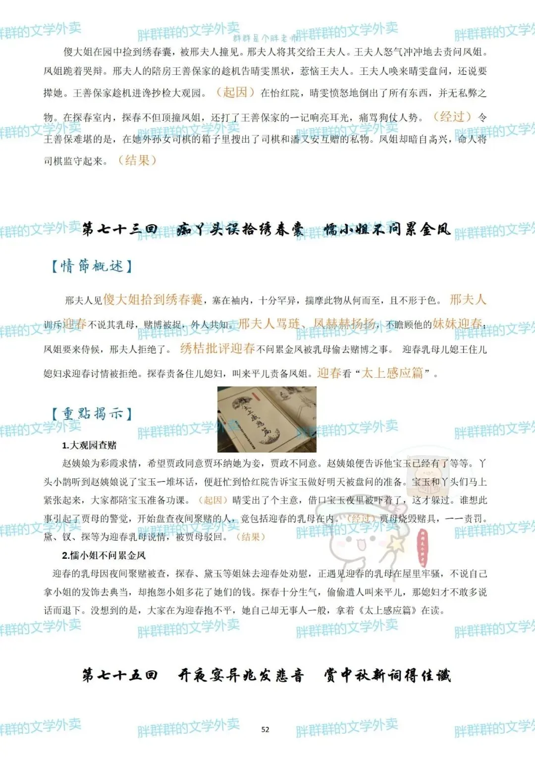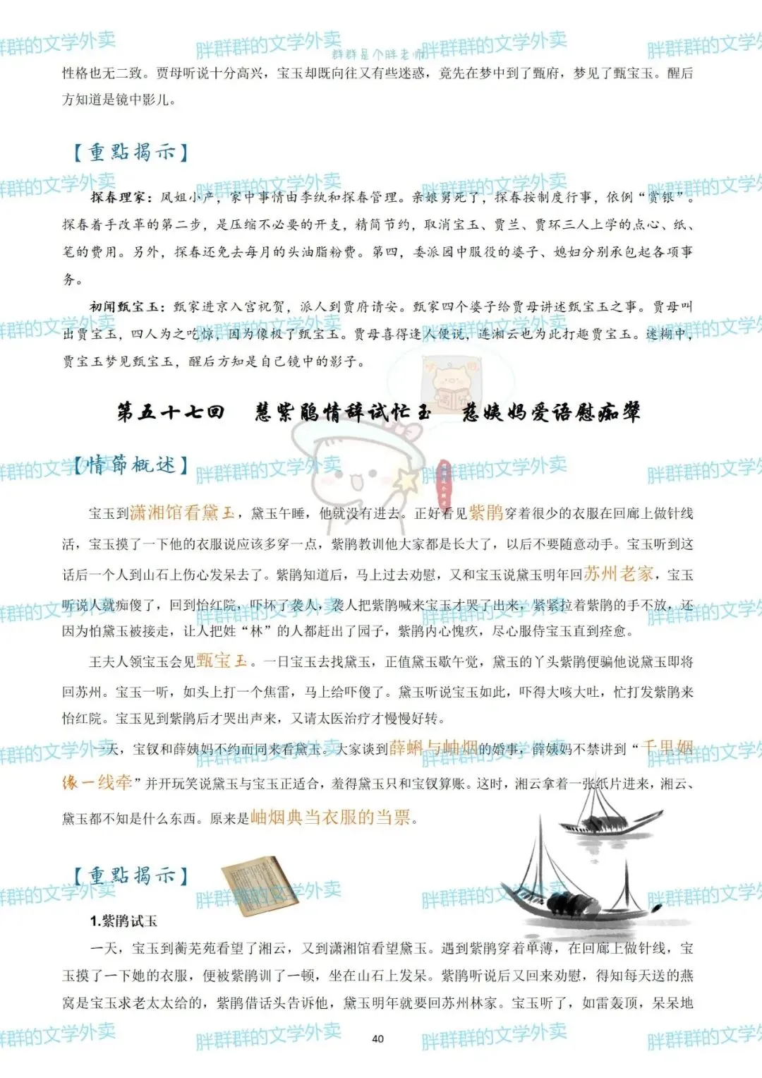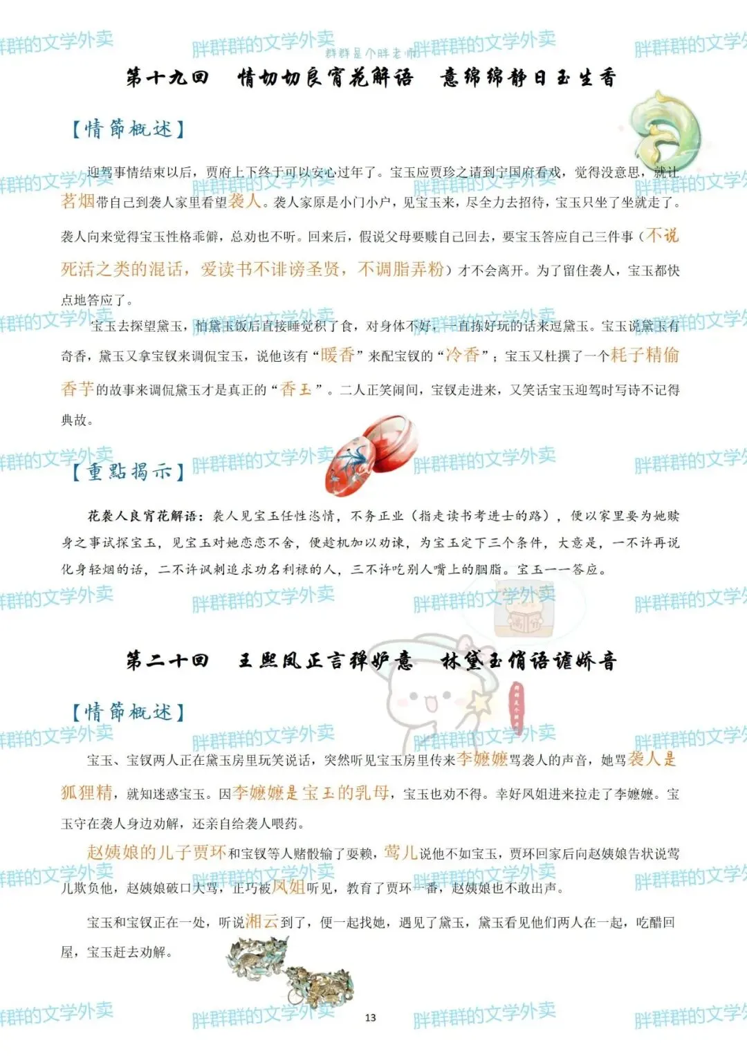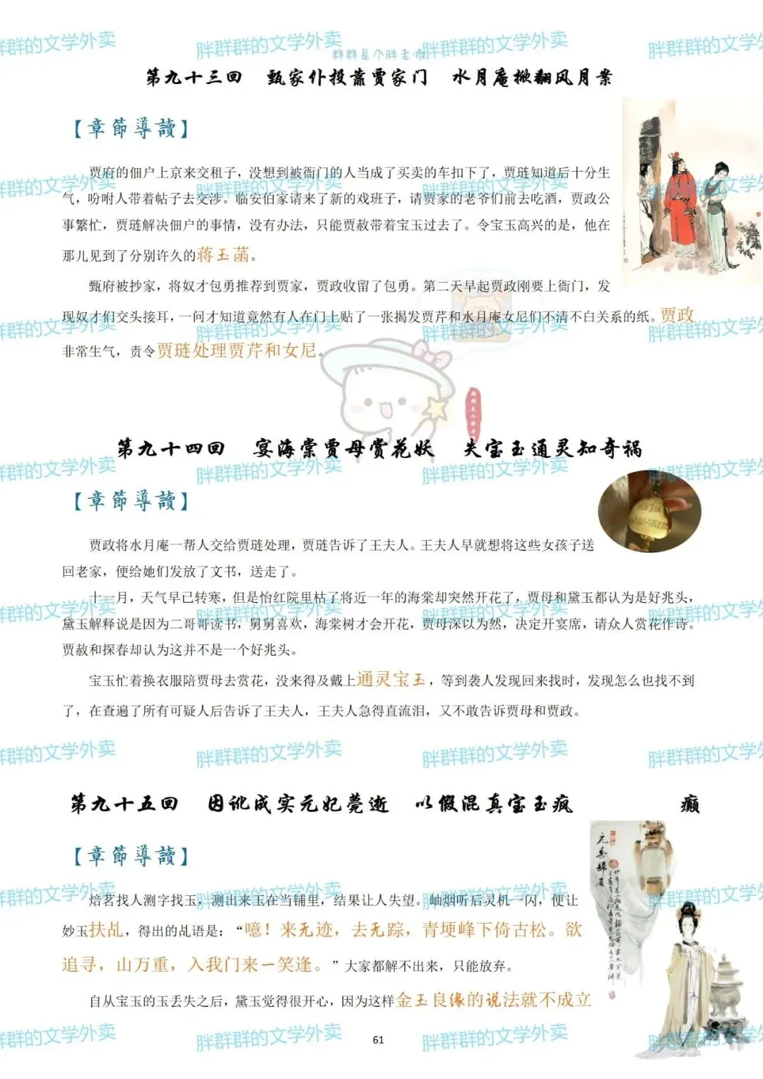 考前复利贴——红楼梦章节概括(可获pdf) 可能是快考试了 最近好多人问以前这个帖子 思维导图高中必读名著——红楼梦思维导图+红楼梦人物介绍 名著系列——红楼梦思维导图+概括 名著系列4——《红楼梦》思维导图高中必读名著 《红楼梦》全本阅读思考——2号(侧重:林黛玉 薛宝钗 黛玉宝钗对比) 假期必读名著1——红楼梦人物篇 《红楼梦》全本阅读思考——1号(侧重:谐音 贾雨村 刘姥姥) 名著概括7——红楼梦1-120回章节概括(和思维导图不是一个版本哦~) 这个都是好久前写的了 那就做个小活动吧 免费获取方式pdf 公众号后台回复 红楼梦 (注意是后台回复,不是留言哦~) 下面可以送的pdf预览 以前就发过 可以直接看不用非要pdf 假装高冷的群胖胖 有事儿可以联系:qunpangpang666 (最好是有啥后台留言) (看到了都会回复哒) 注意注意 ppt不卖不送哒 只是自己带孩子的ppt随手发 下面是日常碎碎念 如果要买小册子 公众号回复666看详情 如果需要打卡小组 回复520看详情 关于群群的高中课程 需要回复036