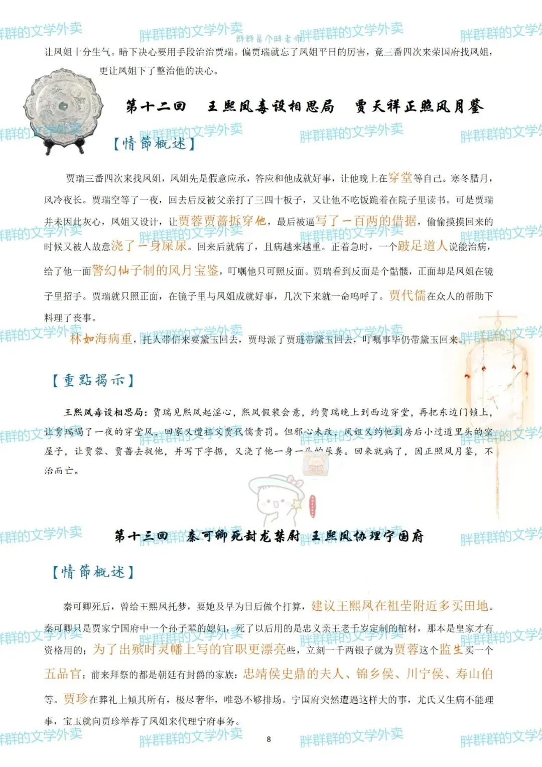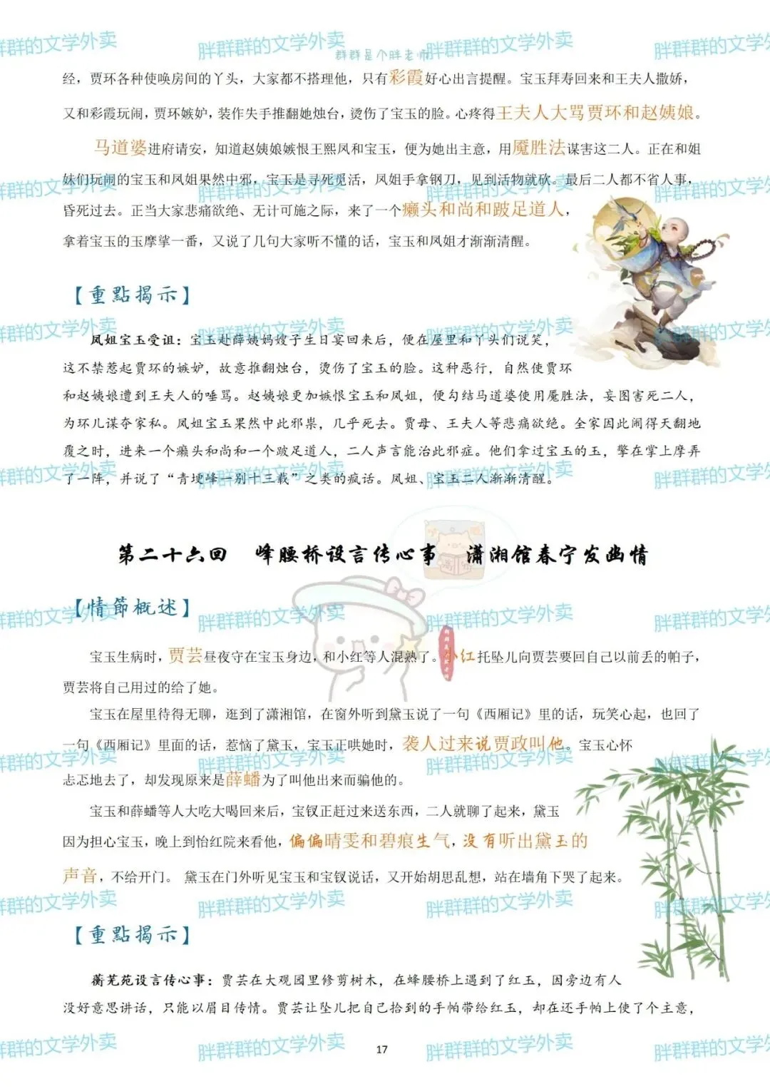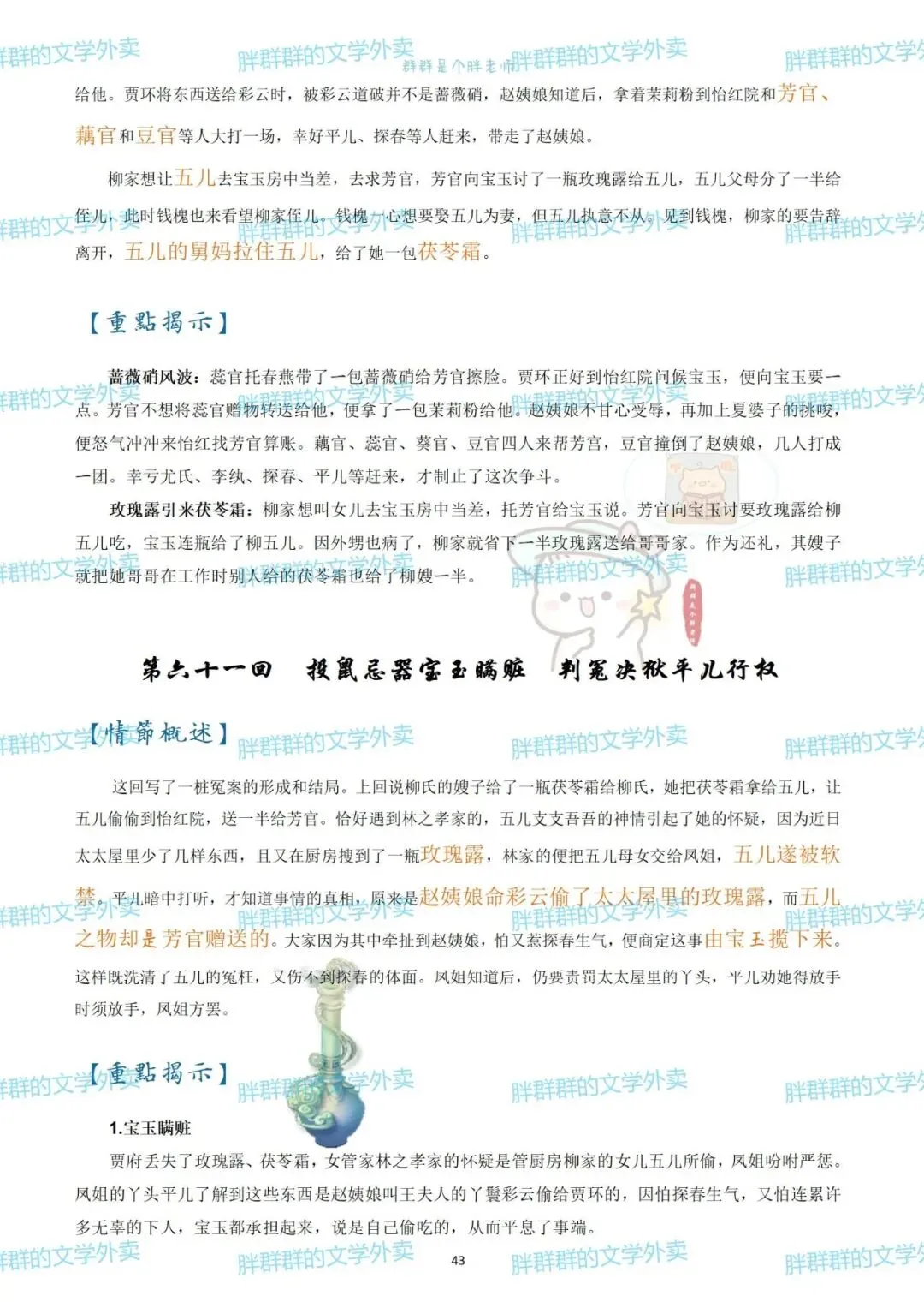 考前复利贴——红楼梦章节概括(可获pdf) 可能是快考试了 最近好多人问以前这个帖子 思维导图高中必读名著——红楼梦思维导图+红楼梦人物介绍 名著系列——红楼梦思维导图+概括 名著系列4——《红楼梦》思维导图高中必读名著 《红楼梦》全本阅读思考——2号(侧重:林黛玉 薛宝钗 黛玉宝钗对比) 假期必读名著1——红楼梦人物篇 《红楼梦》全本阅读思考——1号(侧重:谐音 贾雨村 刘姥姥) 名著概括7——红楼梦1-120回章节概括(和思维导图不是一个版本哦~) 这个都是好久前写的了 那就做个小活动吧 免费获取方式pdf 公众号后台回复 红楼梦 (注意是后台回复,不是留言哦~) 下面可以送的pdf预览 以前就发过 可以直接看不用非要pdf 假装高冷的群胖胖 有事儿可以联系:qunpangpang666 (最好是有啥后台留言) (看到了都会回复哒) 注意注意 ppt不卖不送哒 只是自己带孩子的ppt随手发 下面是日常碎碎念 如果要买小册子 公众号回复666看详情 如果需要打卡小组 回复520看详情 关于群群的高中课程 需要回复036