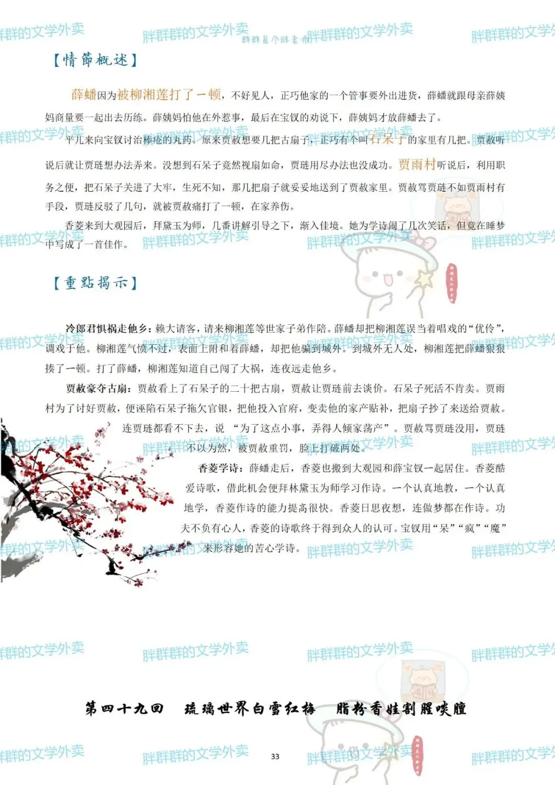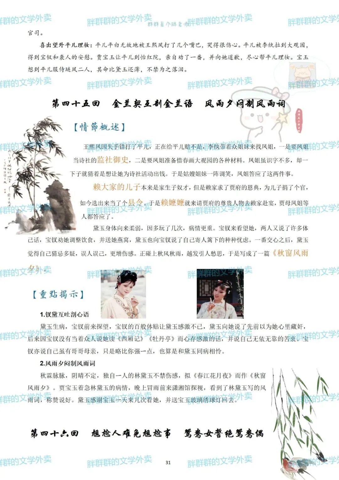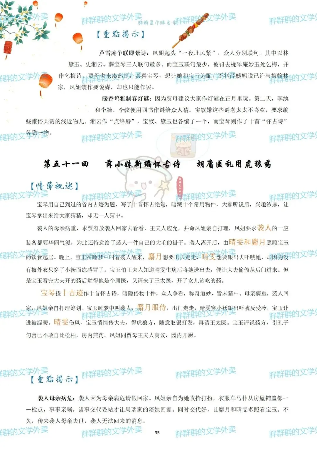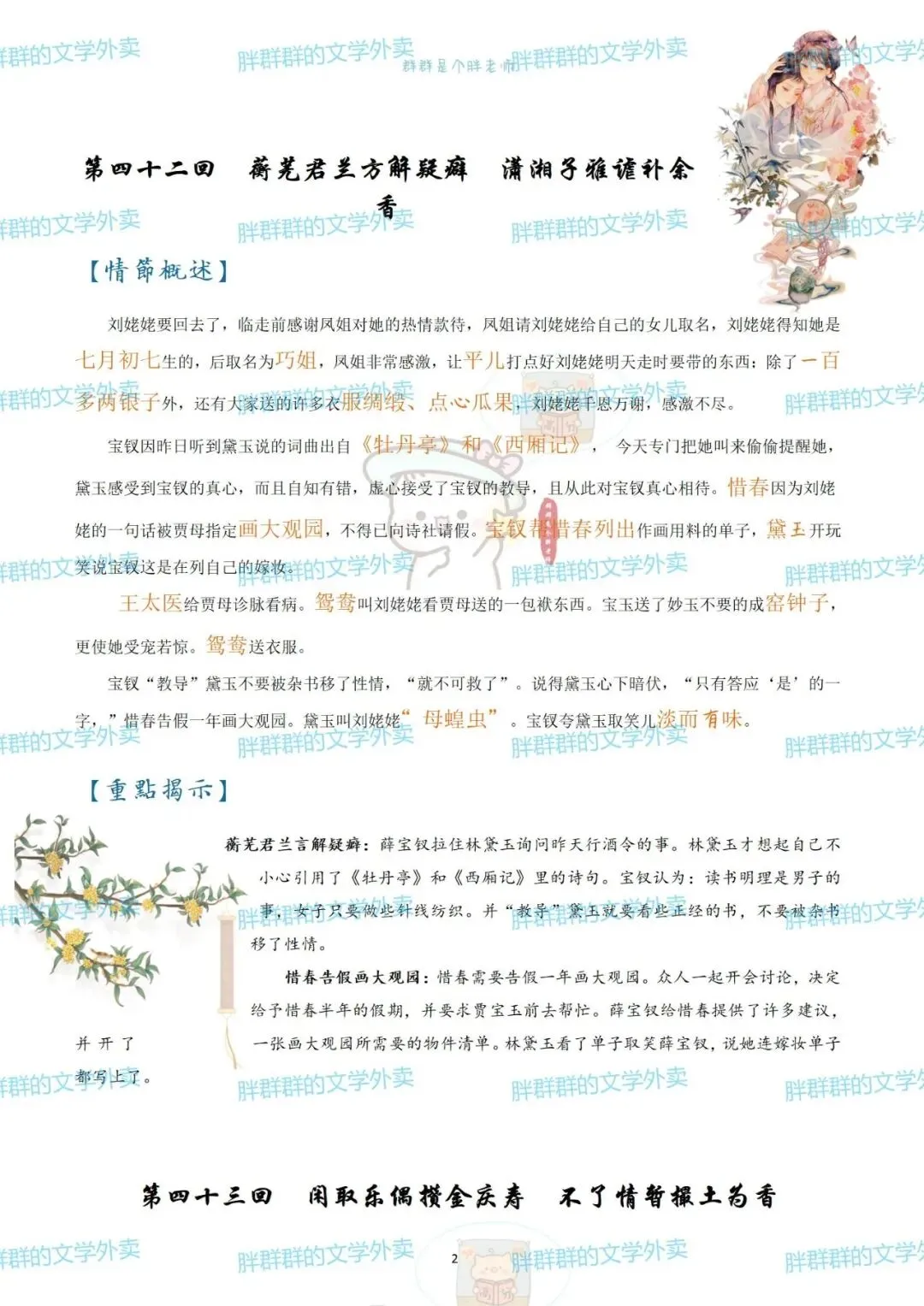考前复利贴——红楼梦章节概括(可获pdf) 可能是快考试了 最近好多人问以前这个帖子 思维导图高中必读名著——红楼梦思维导图+红楼梦人物介绍 名著系列——红楼梦思维导图+概括 名著系列4——《红楼梦》思维导图高中必读名著 《红楼梦》全本阅读思考——2号(侧重:林黛玉 薛宝钗 黛玉宝钗对比) 假期必读名著1——红楼梦人物篇 《红楼梦》全本阅读思考——1号(侧重:谐音 贾雨村 刘姥姥) 名著概括7——红楼梦1-120回章节概括(和思维导图不是一个版本哦~) 这个都是好久前写的了 那就做个小活动吧 免费获取方式pdf 公众号后台回复 红楼梦 (注意是后台回复,不是留言哦~) 下面可以送的pdf预览 以前就发过 可以直接看不用非要pdf 假装高冷的群胖胖 有事儿可以联系:qunpangpang666 (最好是有啥后台留言) (看到了都会回复哒) 注意注意 ppt不卖不送哒 只是自己带孩子的ppt随手发 下面是日常碎碎念 如果要买小册子 公众号回复666看详情 如果需要打卡小组 回复520看详情 关于群群的高中课程 需要回复036