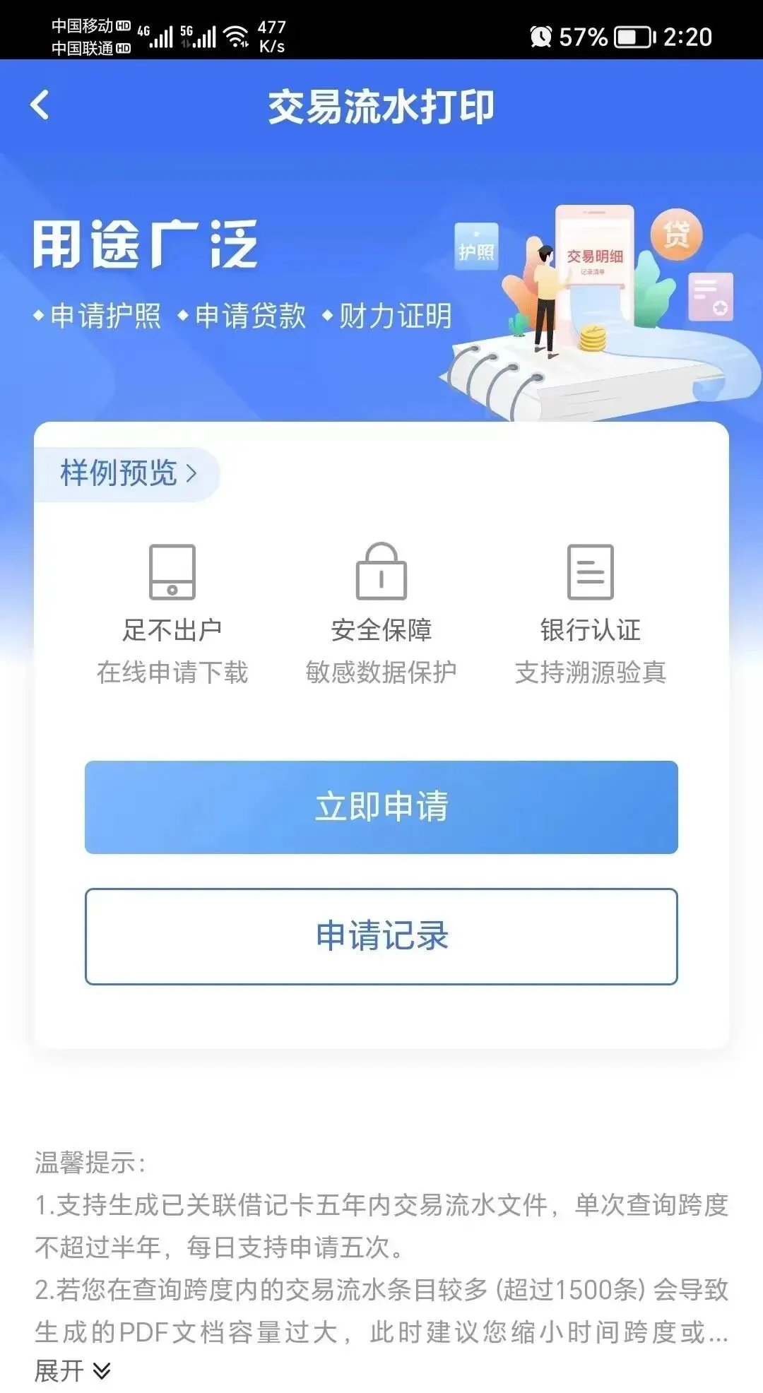 签证申请:欧美、澳洲、日本等国家签证要求提供3-6个月的银行流水,需体现稳定收入、余额充足。电子流水可快速获取,避免因材料准备耽误行程。