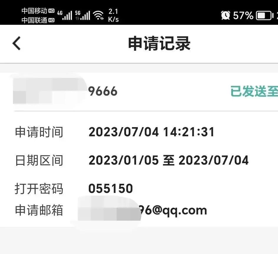 ②登录APP查看申请记录状态(是否成功、是否已发送);