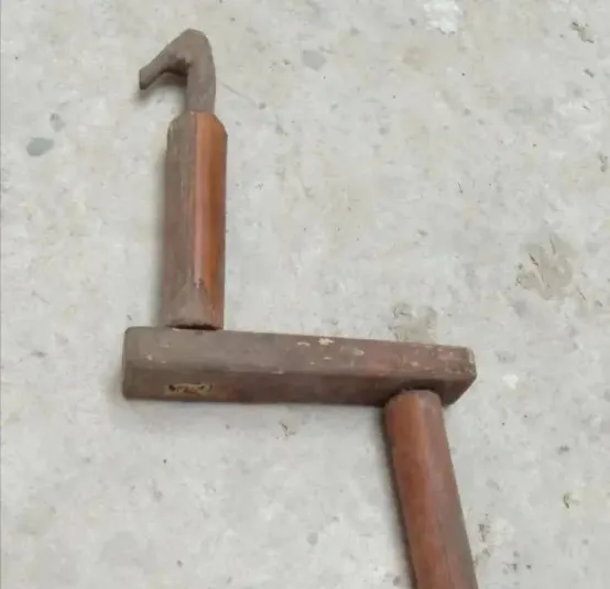 这木头家伙叫木绕子,打草绳的行头,一头长一头短,中间带个弯钩,麻丝草绳拴上去,手摇一圈就越搓越紧,秋天割麦子后,家里男人搓绳女人拾柴,小孩在圈外帮着转,老茧磨厚了也不觉着苦,绳子搓得越长,心里越笃定,这种活儿全靠手劲,得劲就是稳,搁现在啥都买成品了,这耍手腕的日子过去没影儿了。