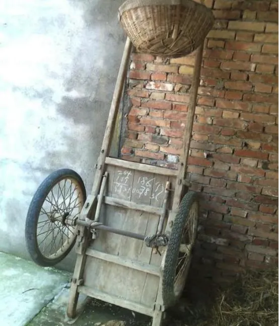 这个铁轮子木把手的叫老架子车,两轮并着走,前头长柄一个人能抬起来推,一趟趟搬东西盖房子全靠它,家里一旦有人要去厂里拉砖,老爹在前头死劲推,我扒着尾巴帮着稳住,脚下被颠得发麻还觉得自己厉害,推完一身汗大哥说,这胳膊能顶半个大人用,后来电三轮多了,这车子就往墙边一靠,轮胎长草只剩下一点叮当响。