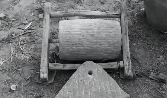 照片里那个大石轮子,叫碌碡,拗口不常念,场院里打麦子用的重磅家伙,两头搭着木架,要人拉牛拽,一圈圈碾场,石头压过地上金灿灿的麦子声响轰隆隆直震耳,夏天孩子都赤着脚在后头撒欢,爷爷说别靠太近,碌碡压身能出大血泡,后来村里添了脱粒机,这石疙瘩就搁在一边慢慢落灰,有人直接拿它当门墩使。