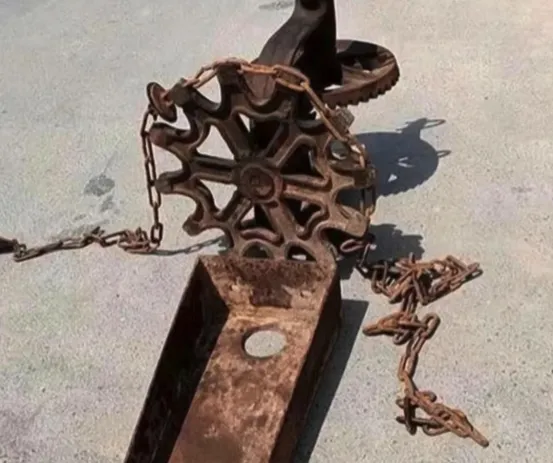 这个铁轮铁链子一摊,地上乱作一团,叫铁链水车,种地浇水井边的老伙计,一脚踩下去一手摇,水桶链子顺井口咕噜咕噜转,小孩最爱抢着摇,摇快了链子打滑还得爸妈照着脊梁吼一嗓子,家里井水一灌满,夏天贪玩人也跟着湿一身,现在用上电泵,谁还记得起井台晒太阳那味道,家里老辈说,以前出水靠人力,水甜汗也咸。