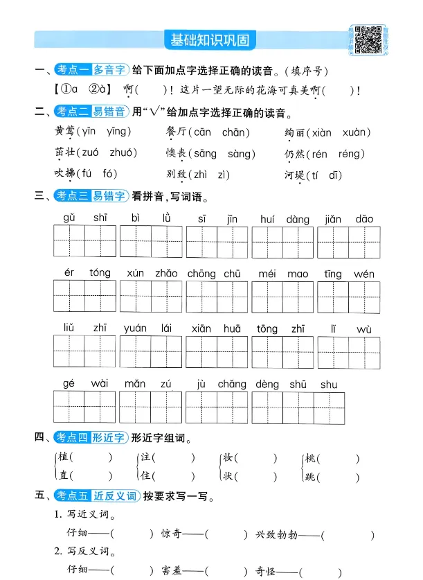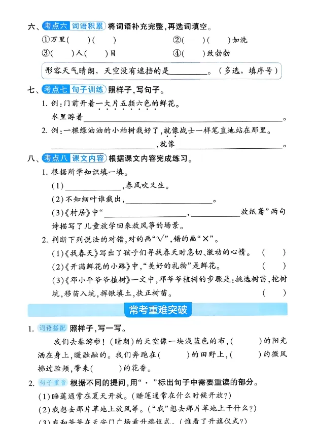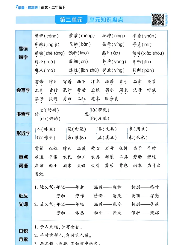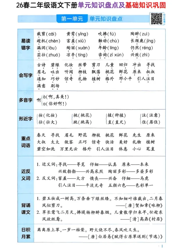 26春单元知识盘点二年级下册,电子版可打印可下载