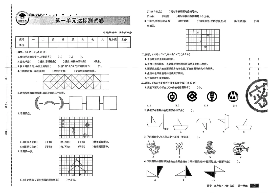 26春五下名校单元测试卷冀教版 电子版可打印