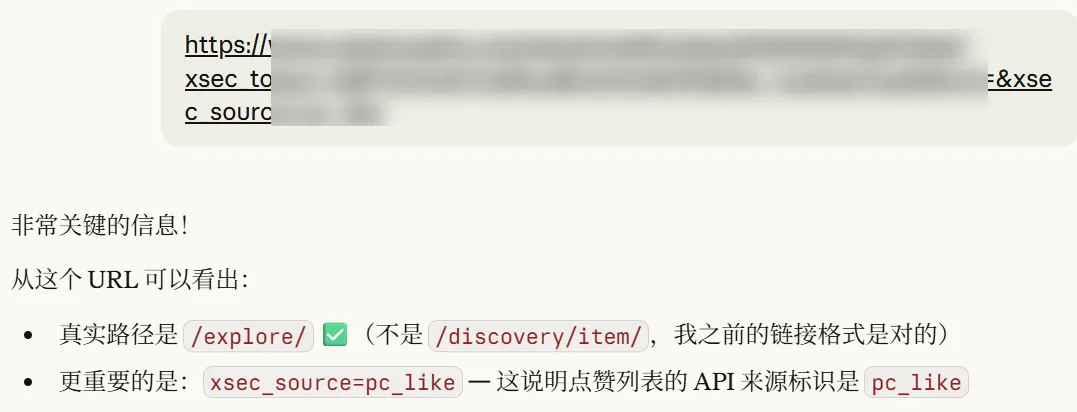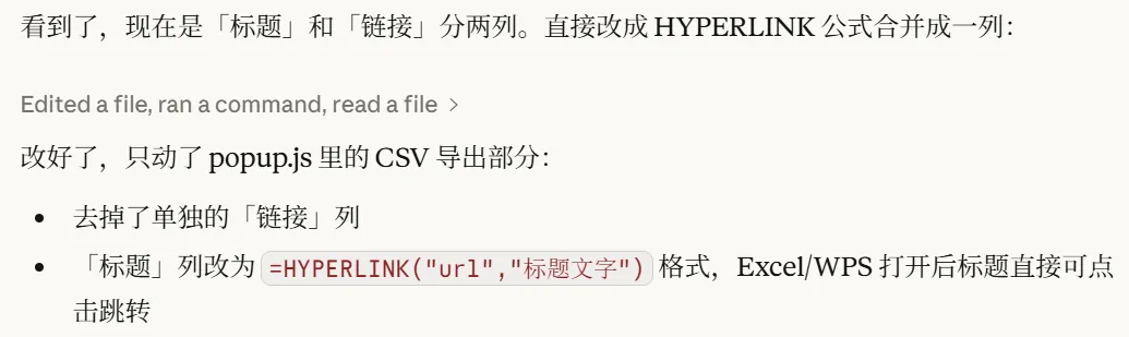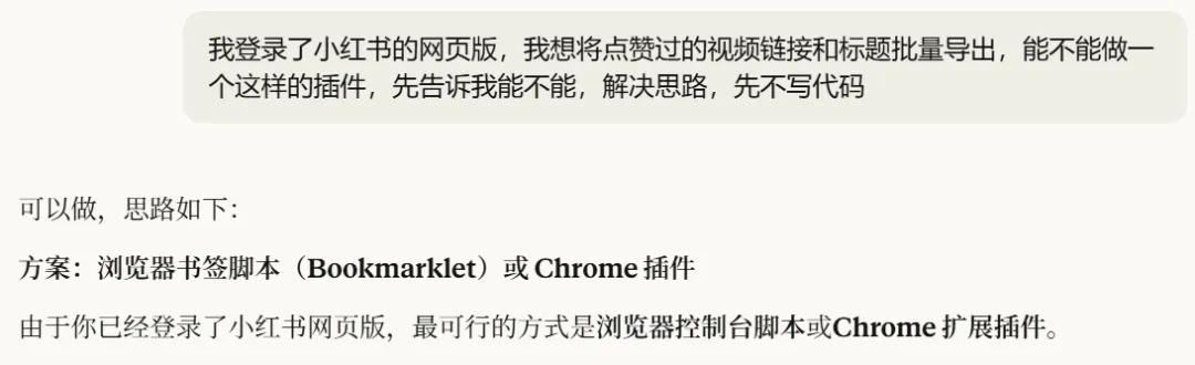 个人喜欢把小红书的点赞当做收藏来用看到觉得不错的内容就会用点赞做记录几天前看到网友将小红书笔记导出+谷歌Notebooklm,做内容分析和存档,觉得思路不错,最大的问题是如何批量导出小红书笔记列表市面已经有插件能实现了,但基本都要收费那就试试自己做一个吧Claude果然不负所托,很快就做出来了(太强了)分享一下过程第一版并没有成功。页面滚动了,显示采集中,但是采集数量显示为0于是提供了一个笔记链接给AI(根据之前的经验,AI会搞不清楚笔记的真正链接)这一步,Claude并没有直接改写代码,而是要API的接口路径和响应内容(不懂没关系,AI会教)这一步比较让人惊喜,同样的功能和提示词,试了Google AI studio,deepseek,Gemini,无一例外都没有要求提供更多的信息,而是咔咔上来就直接输出,结果都用不了获得了正确的笔记链接和接口响应,这时插件已经可以正常使用了:但是,链接行是单独的一列,为了让体验更好一点(标题自带笔记超链接),于是:至此,完美解决了我的需求中间的插曲1.点赞列表完成了,增加“收集收藏列表”却失败了加上导出收藏列表的需求后,试了好几次都不成功,并且连带点赞列表收集也失效了为了解决这个问题,进行了几轮修改,但改来改去都不成功,还把免费额度都用完了(不想折腾了,默默用回第一版)这也说明,当AI遇到一些有难度的bug时,是很难自己修复好的,或者修复的成本很高,经常越修越糟糕2.同样的提示词,试了Google AI studio,deepseek,Gemini,要么是无法直接输出文件,只能给出代码要自己写入文件,要么就是输出用不了正如前文所说,只有Claude在编辑过程要求提供更具体的信息,输出也是直接打包好的文件,对小白更友好思考时刻