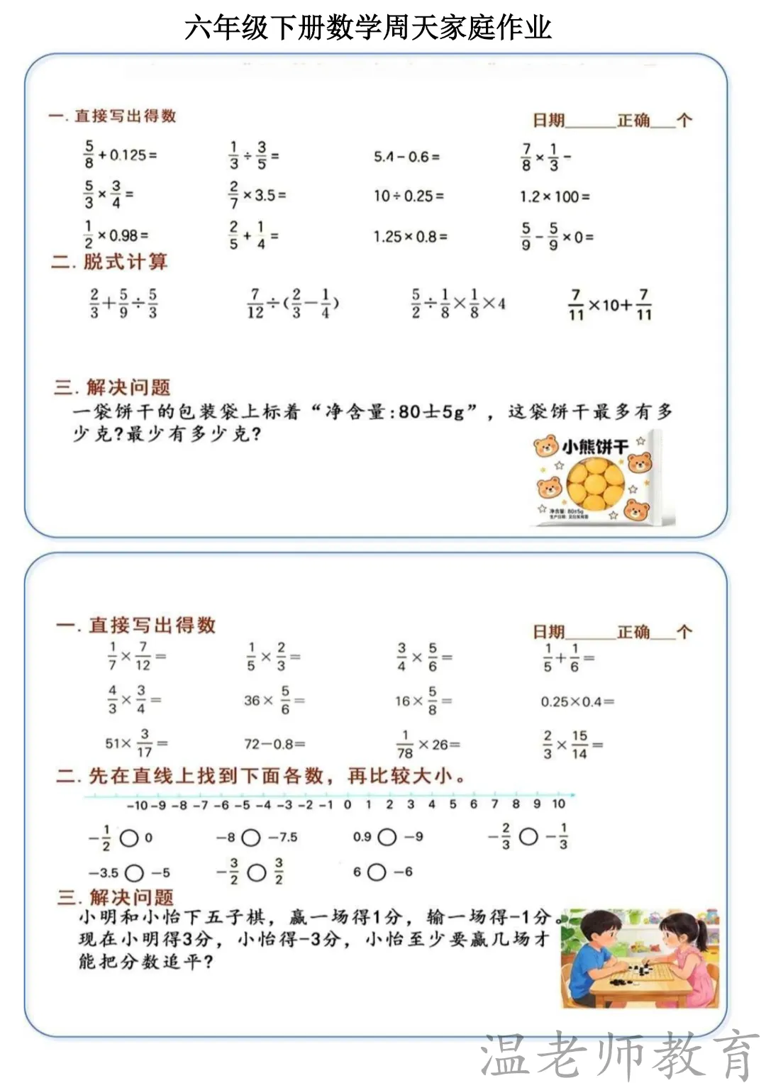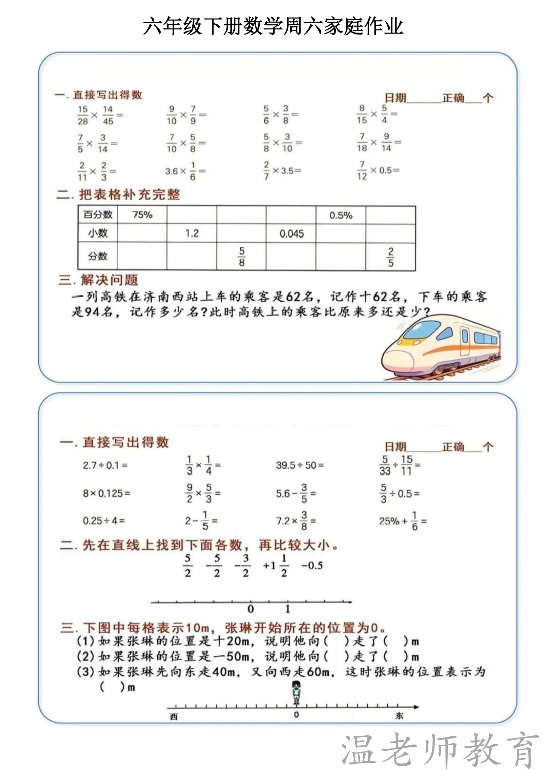 🌸今天给家长分享的是:26六年级下册数学《周末作业》|电子版可打印