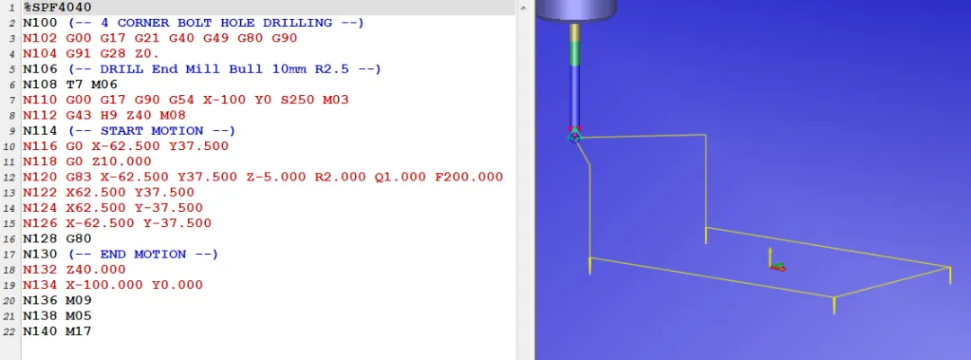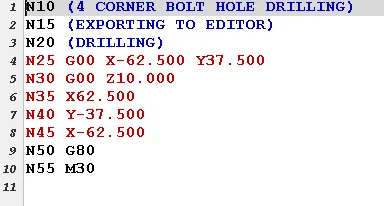 现在,要创建包含 4 个角螺栓孔钻孔操作的子程序“4040.nc”,请单击“导出编辑器”按钮。