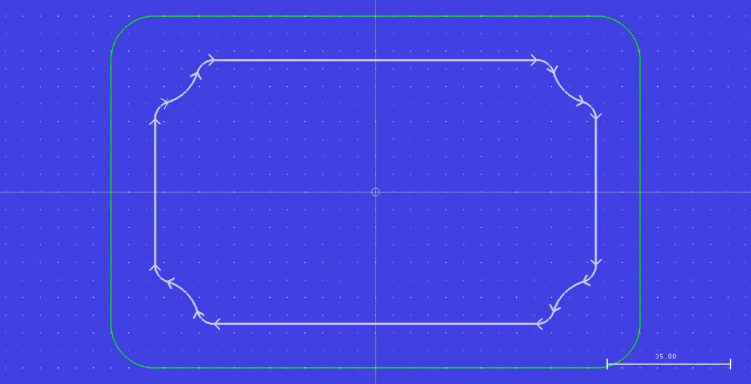 子程序 SPF 4003 的铣刀是 0.8 毫米的槽铣刀,用于铣削法兰内轮廓。法兰的最后一道加工工序是在内轮廓内进行型腔铣削。使用 CNC-Calc 打开 CAD 文件“Flange without corner bore holes.cdd”,该文件显示了法兰的内轮廓和外轮廓。