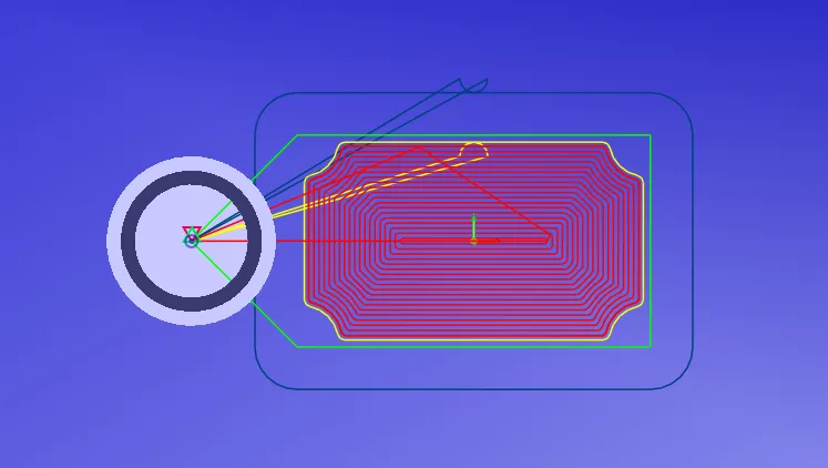 准备就绪后,单击“显示刀具路径”按钮,型腔铣削功能将生成刀具路径。