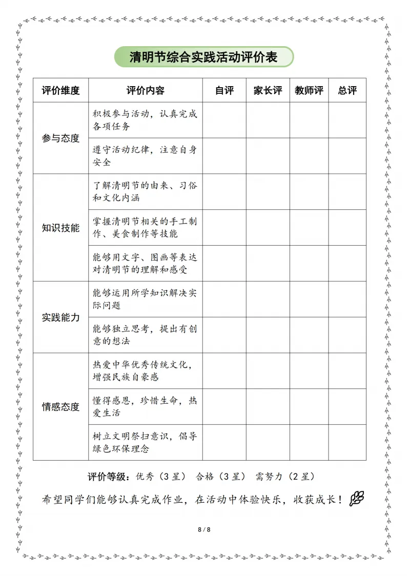 《清明节综合实践作业》1-6年级