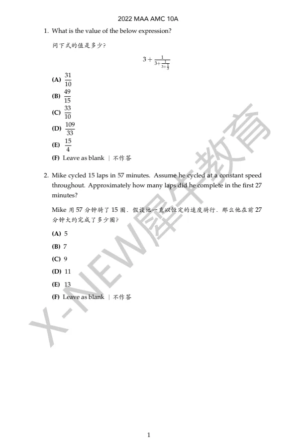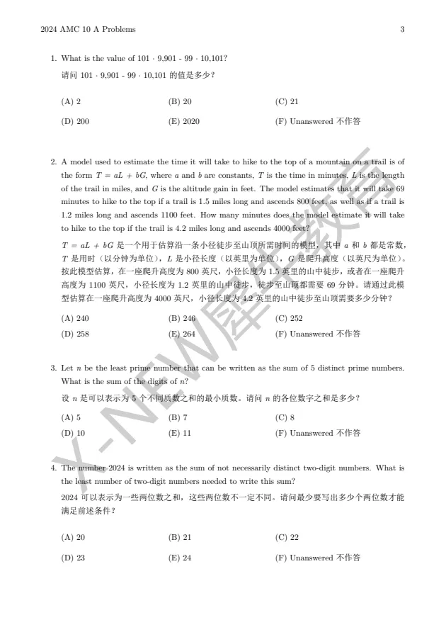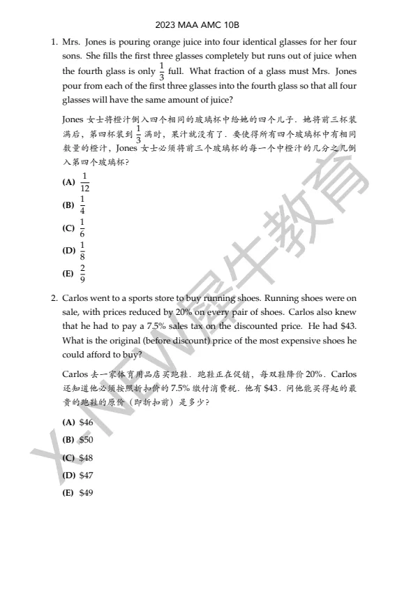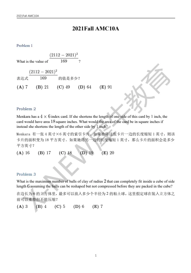 ~【免费领取】AMC10真题高清PDF(2020-2025)