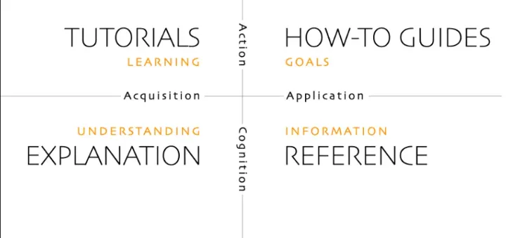 Diátaxis 规定了内容、架构和形式的方法,这些方法源自系统性地理解文档用户的需求。它指出了四种不同的需求,以及四种对应的文档形式——教程、操作指南、技术参考和解释。它将这些需求置于系统性关系中,并提出文档本身应围绕这些需求的结构进行组织。