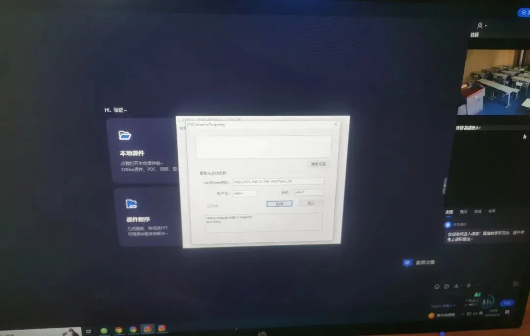 4点进入课堂时,调整,设置摄像头为录播室直播视频网址,并设置摄像头参数,这一部分关键是将录课与播放的对接。也可以提前测试与检查运行画面音量和希沃白板设置情况。一切完成,即可开始录课。