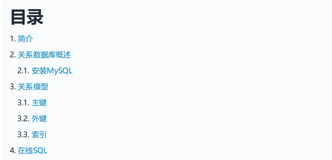 这是入门的基础模块,首先会从最常用的 MySQL 入手,讲解关系型数据库的核心概念;重点拆解主键、外键、索引这三个关键概念 —— 它们是理解后续 SQL 语法逻辑的基础,一定要搞懂;最后还会介绍在线 SQL 环境的使用方法,方便新手无需本地安装数据库就能直接练习。这部分内容难度低,建议快速通读,建立对 SQL 的整体认知。