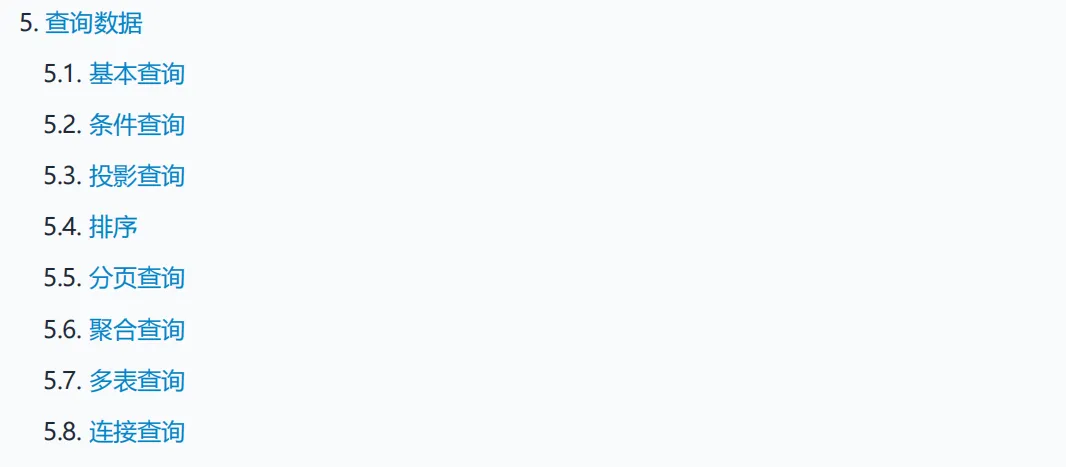 数据查询是 SQL 最核心、最常用的功能,这部分会系统讲解各类查询语法:包括基础查询操作、带条件的精准查询、投影查询(筛选指定字段)、结果排序、分页查询(处理海量数据)、聚合查询(求和 / 计数 / 平均值等),以及多表查询和连接查询(关联多个数据表取数)。这些语法不用死记硬背,关键是多动手练习,用几次就能熟练掌握。
