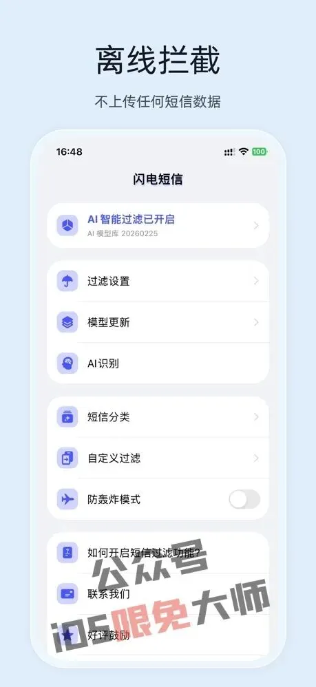 【闪电短信 – 垃圾短信自动拦截工具】一款短信息拦截工具,支持正则表达式匹配与“防轰炸模式”,智能分类正常、垃圾、推广、交易信息。目前软件的内购正在限时免费,获取时注意确认价格,手慢无!
