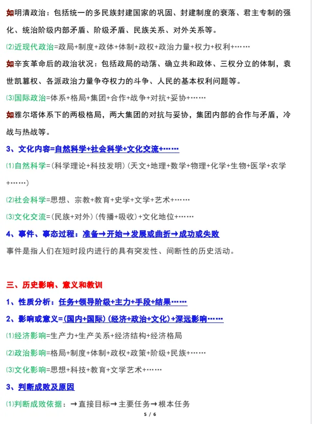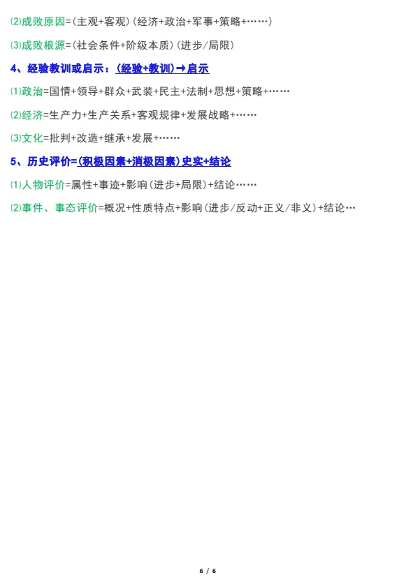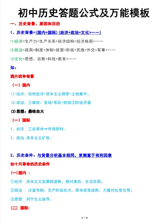2026年初中历史答题公式及万能模板,PDF电子版可打印